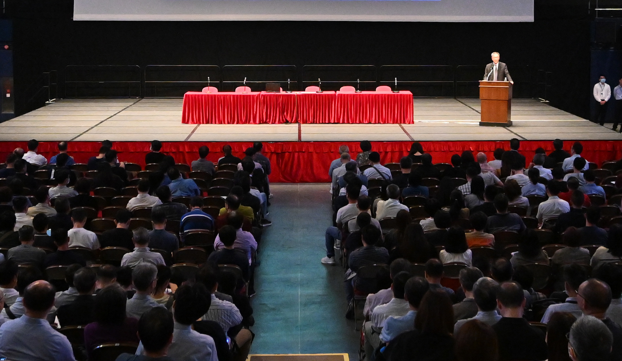 陸啟康法官向約2000名出席的主管級選舉工作人員介紹是次選舉的投票和點票安排,以及需注意事項,包括區議會地方選區和地區委員會界別不同的投票時間、為有需要選民設立特別隊伍、使用電子選民登記冊系統派發選票、投票站轉換成點票站的程序,以及處理投訴的程序和技巧。