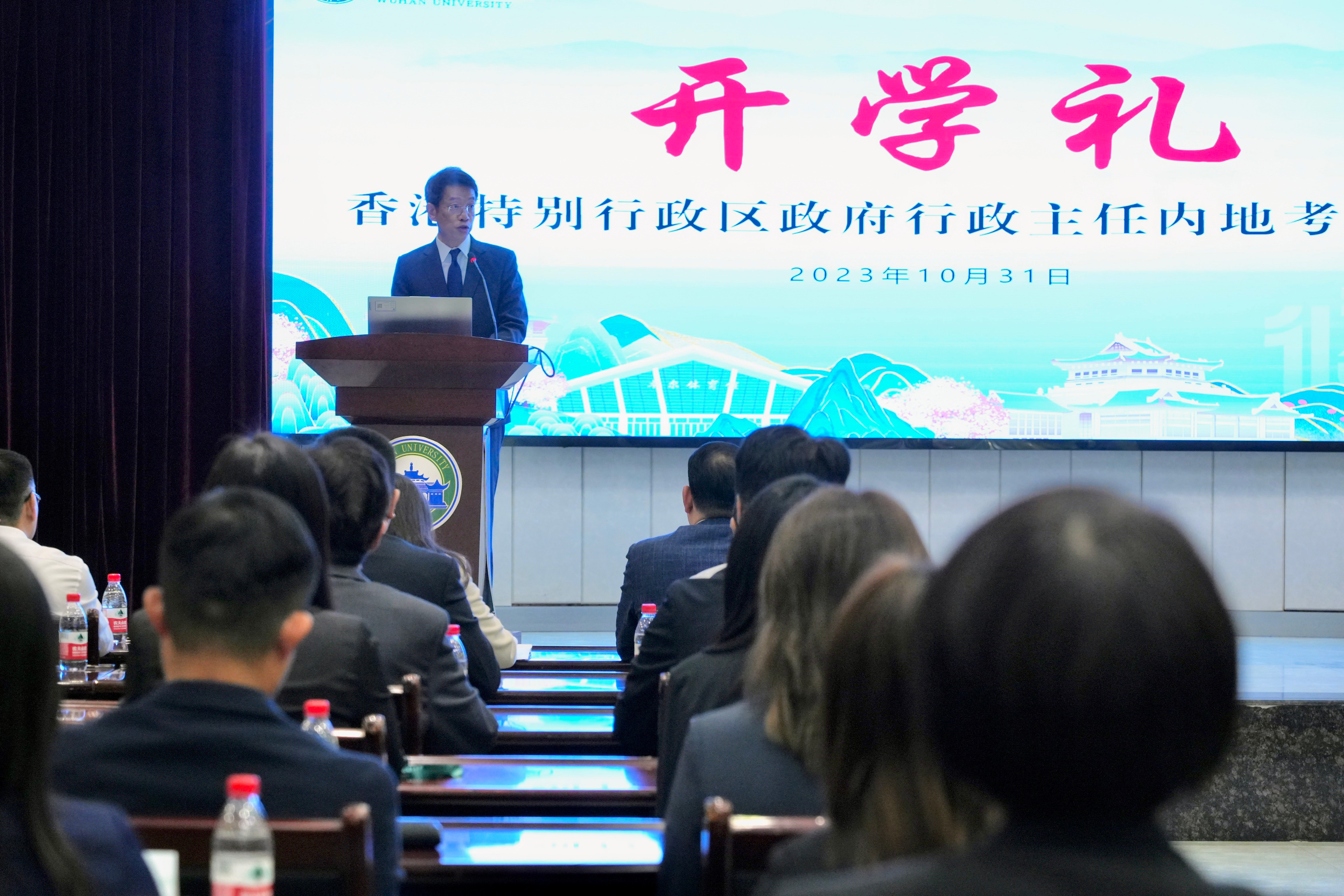 香港特區政府與武漢大學合辦的第一期「行政主任內地考察課程」今日(10月31日)在武漢舉行開學禮,約40位來自20多個政策局和部門、不同職級的行政主任將於當地進行5日4夜的考察交流和課堂學習,了解國家最新發展以及新時代重要治國方針和政策。