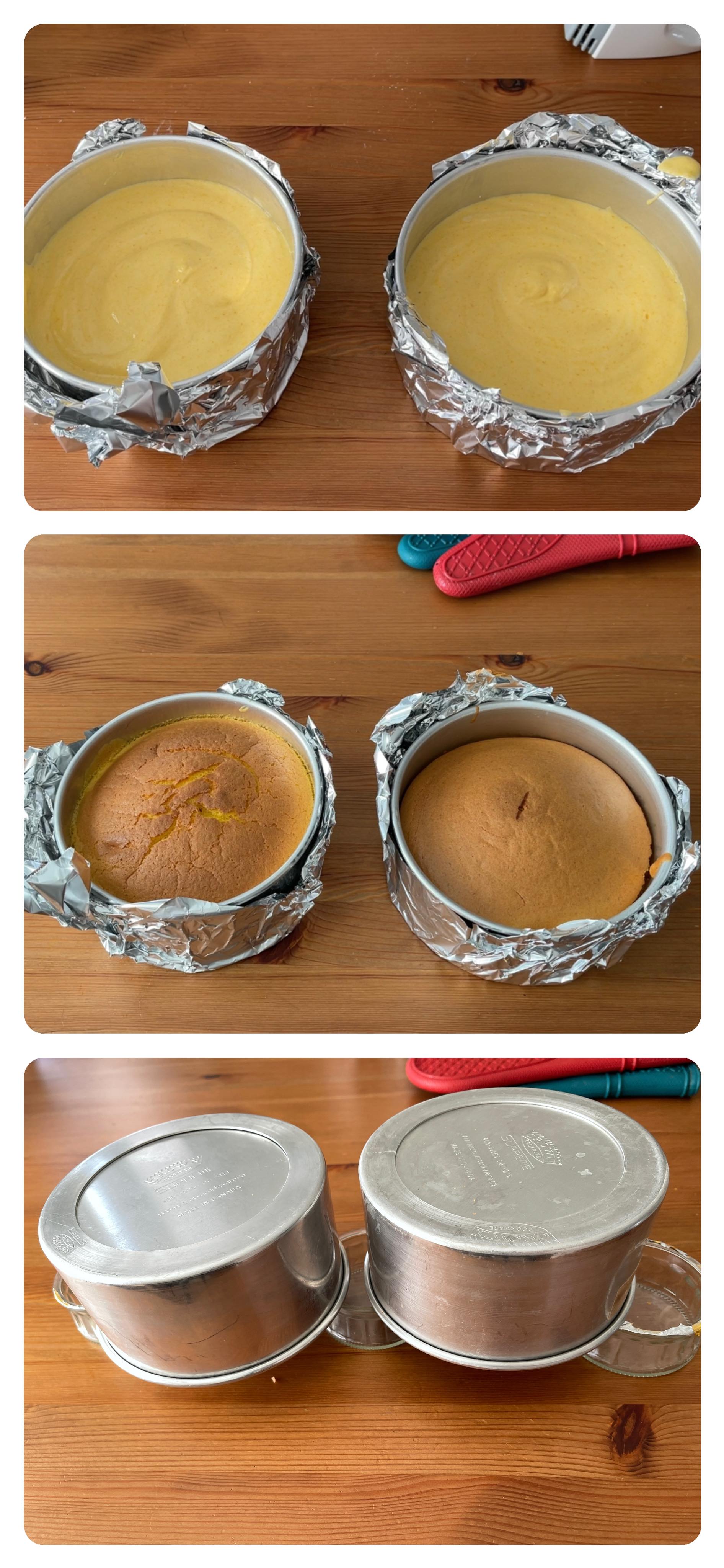 (10)將焗爐溫度調低一點至325F/160C,將其中一個蛋糕焗35-40分鐘至熟即可取出。