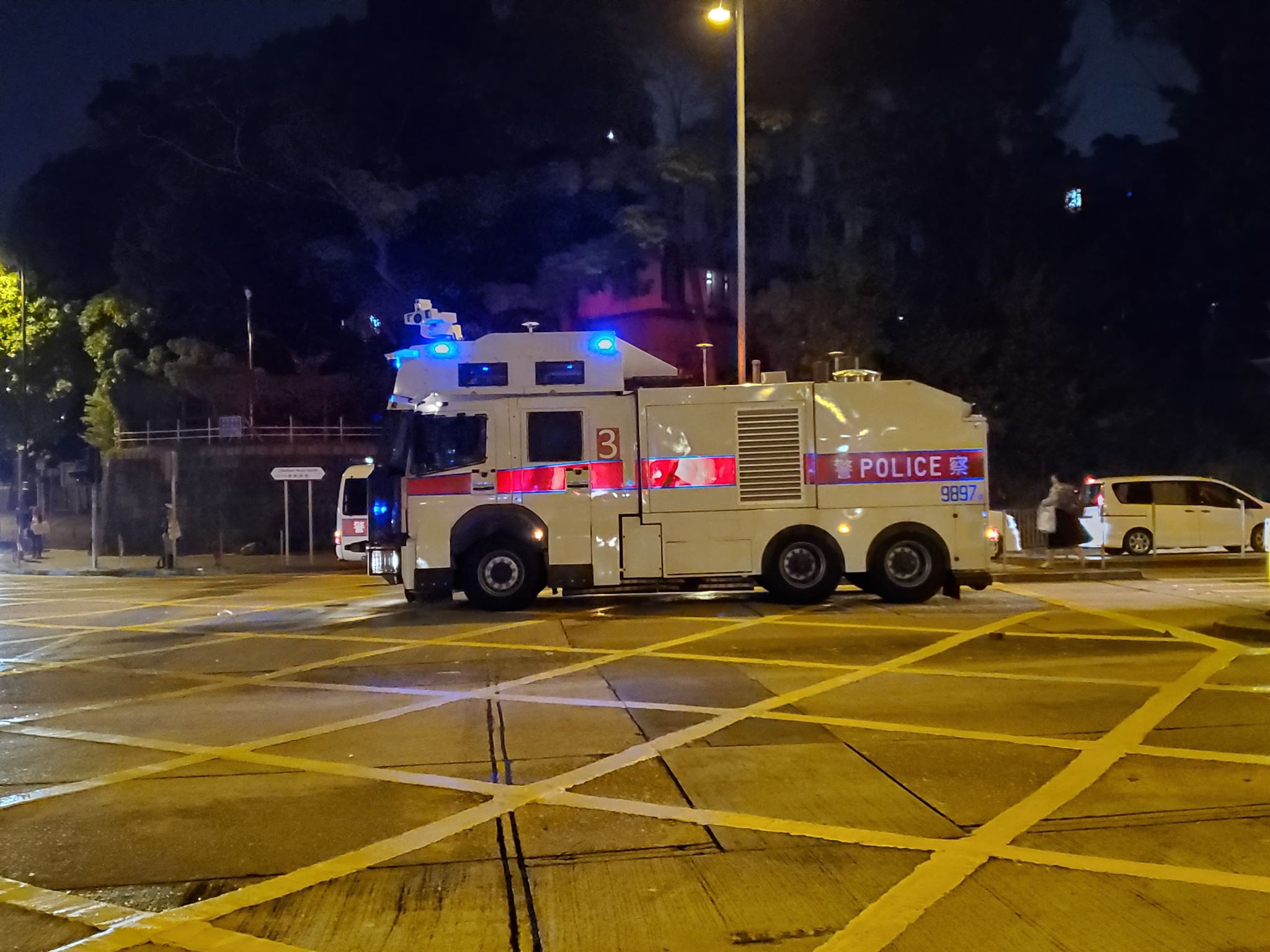 警方警告示威者立刻停止違法行為,並已展開驅散行動,包括使用人群管理特別用途車,驅散示威者。