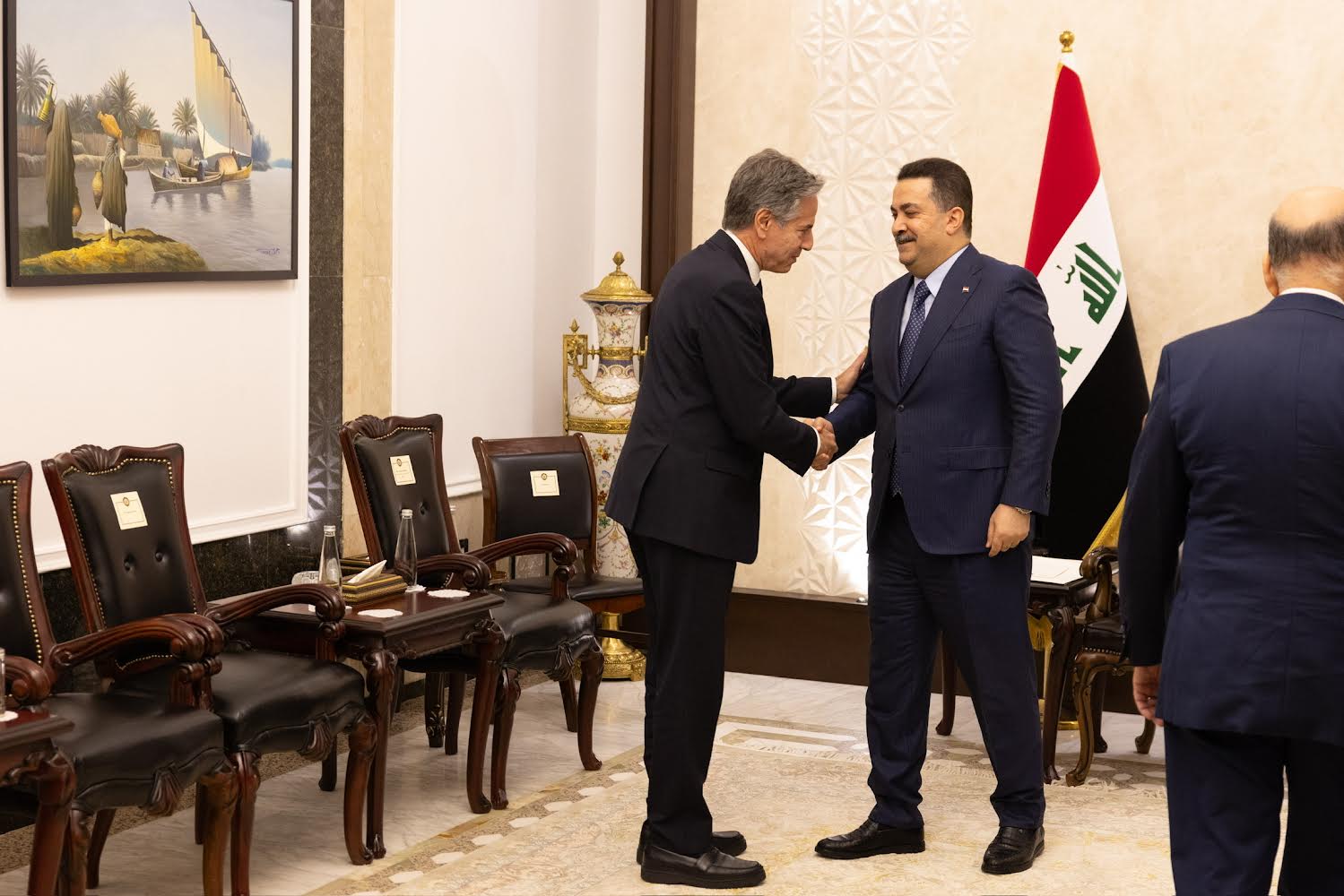 繼稍早走訪約旦河西岸後,布林肯晚上抵達巴格達,與伊拉克總理蘇達尼會談,這是他就任國務卿後首訪伊拉克。
