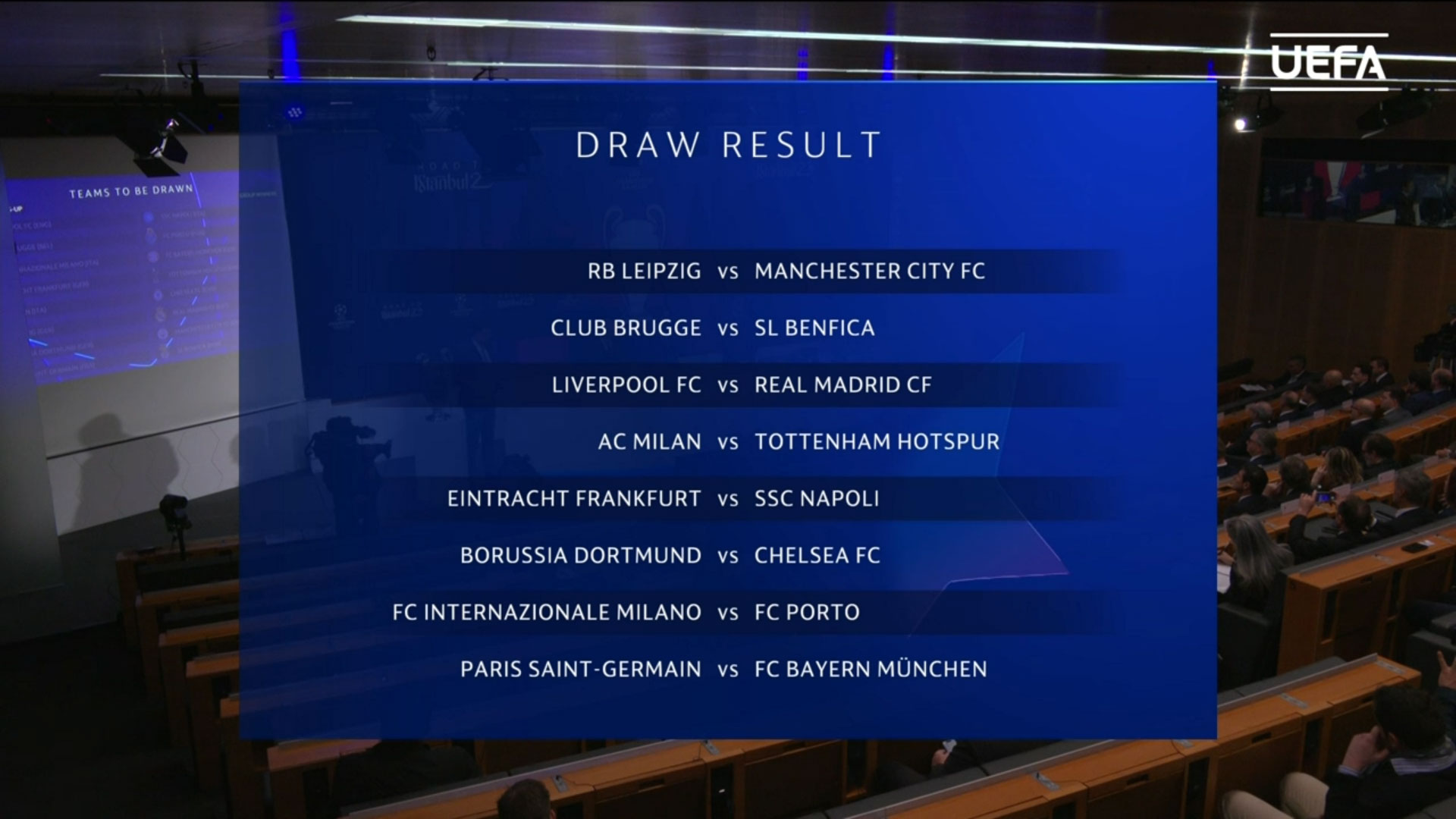 16強首回合賽事,將於明年2月14、15、21及22日舉行,次回合則在3月7、8、14及15日上演。