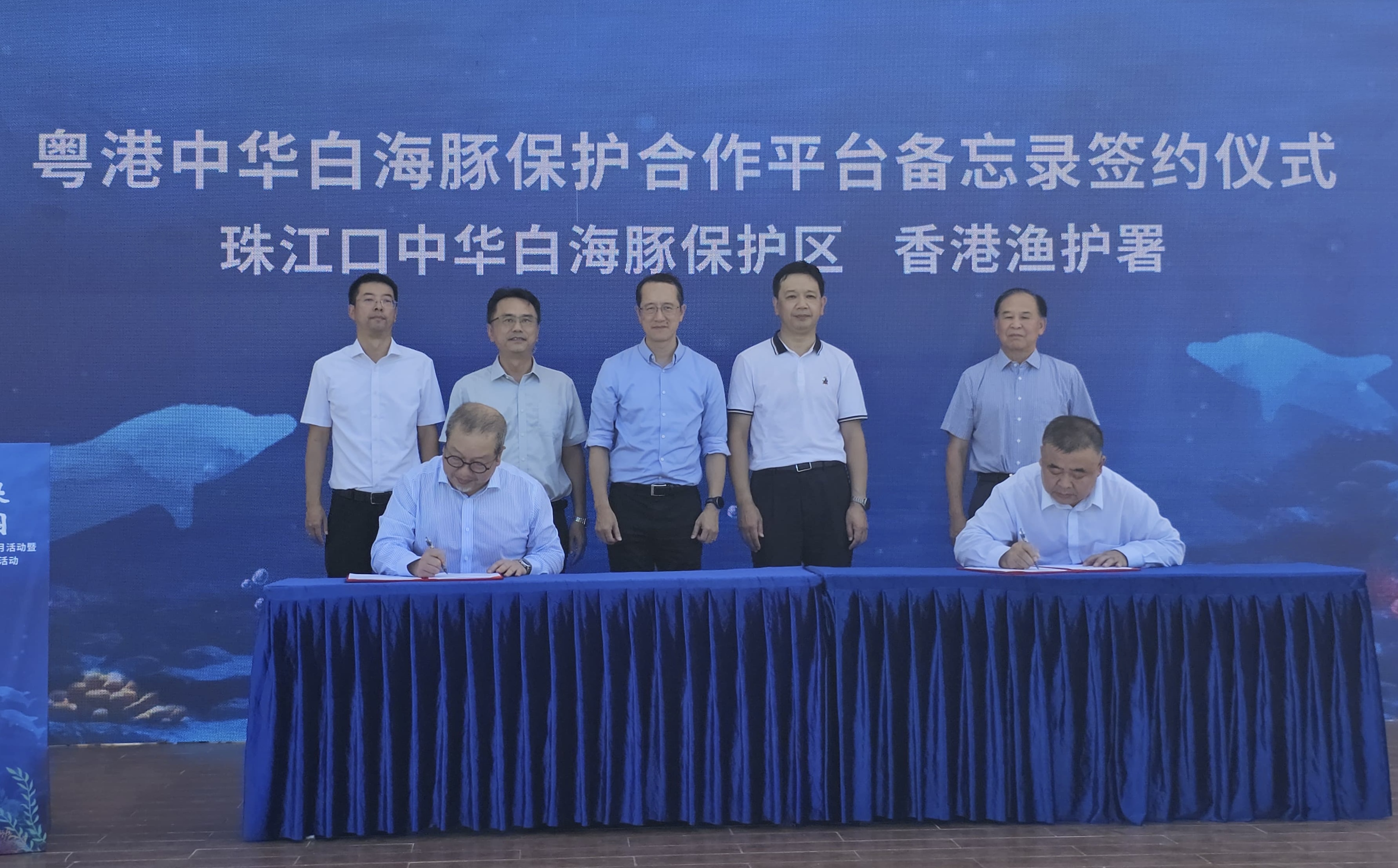 香港特區政府漁農自然護理署今日(11月8日)與廣東珠江口中華白海豚國家級自然保護區管理局,簽署《中華白海豚保護合作平台備忘錄》,深化粵港兩地合作保護於珠江口水域棲息的中華白海豚。
