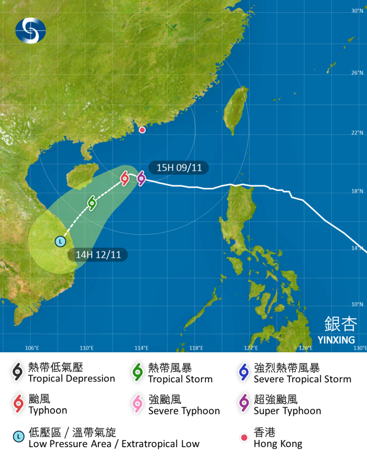 按照現時預測路徑,「銀杏」會在今晚至明早於本港以南約300多公里掠過。除非「銀杏」採取較為偏北的路徑靠近珠江口,否則改發更高熱帶氣旋警告信號的機會甚低。