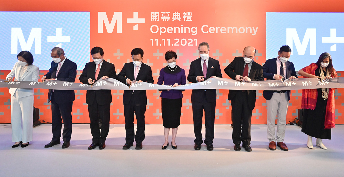 特首林鄭月娥今午在開幕典禮中表示,M+博物館是一所立足香港、背靠祖國、服務世界的當代視覺文化博物館,其規模在亞洲首屈一指。