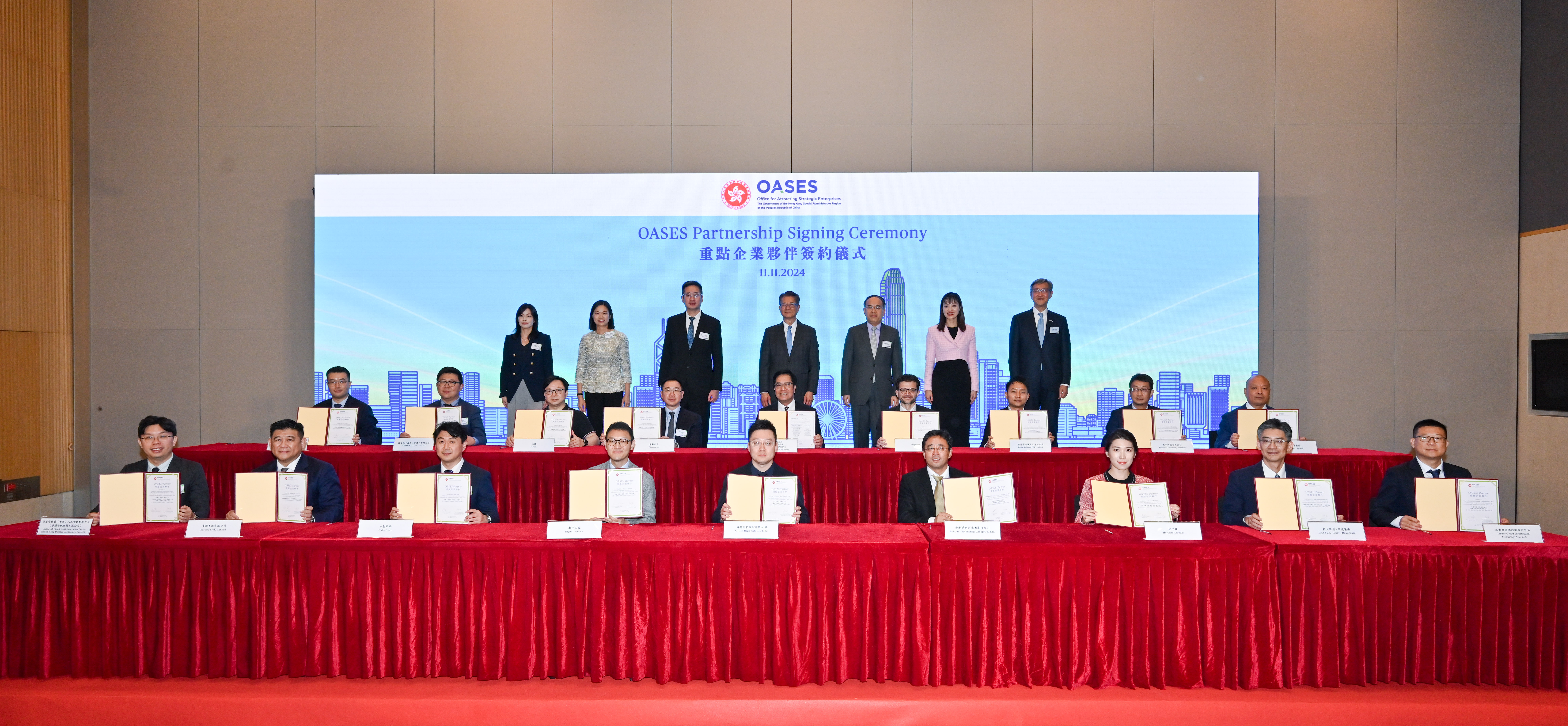 引進重點企業辦公室今日(11月11日)舉辦「重點企業夥伴簽約儀式」,歡迎新一批重點企業落戶香港或擴展其在香港的業務。