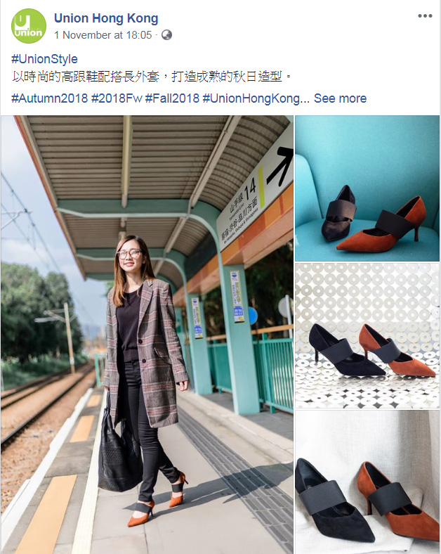 話說連鎖鞋店Union於本月1日在官方 Facebook 專頁貼文宣傳,指「以時尚的高跟鞋配搭長外套,打造成熟的秋日造型」,但一幅在月台拍攝的圖片卻有點不對勁。