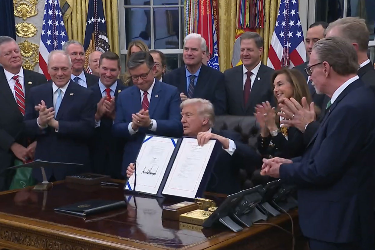 法案在眾議院通過後,隨即送交白宮,由特朗普在白宮橢圓形辦公室簽署成法。