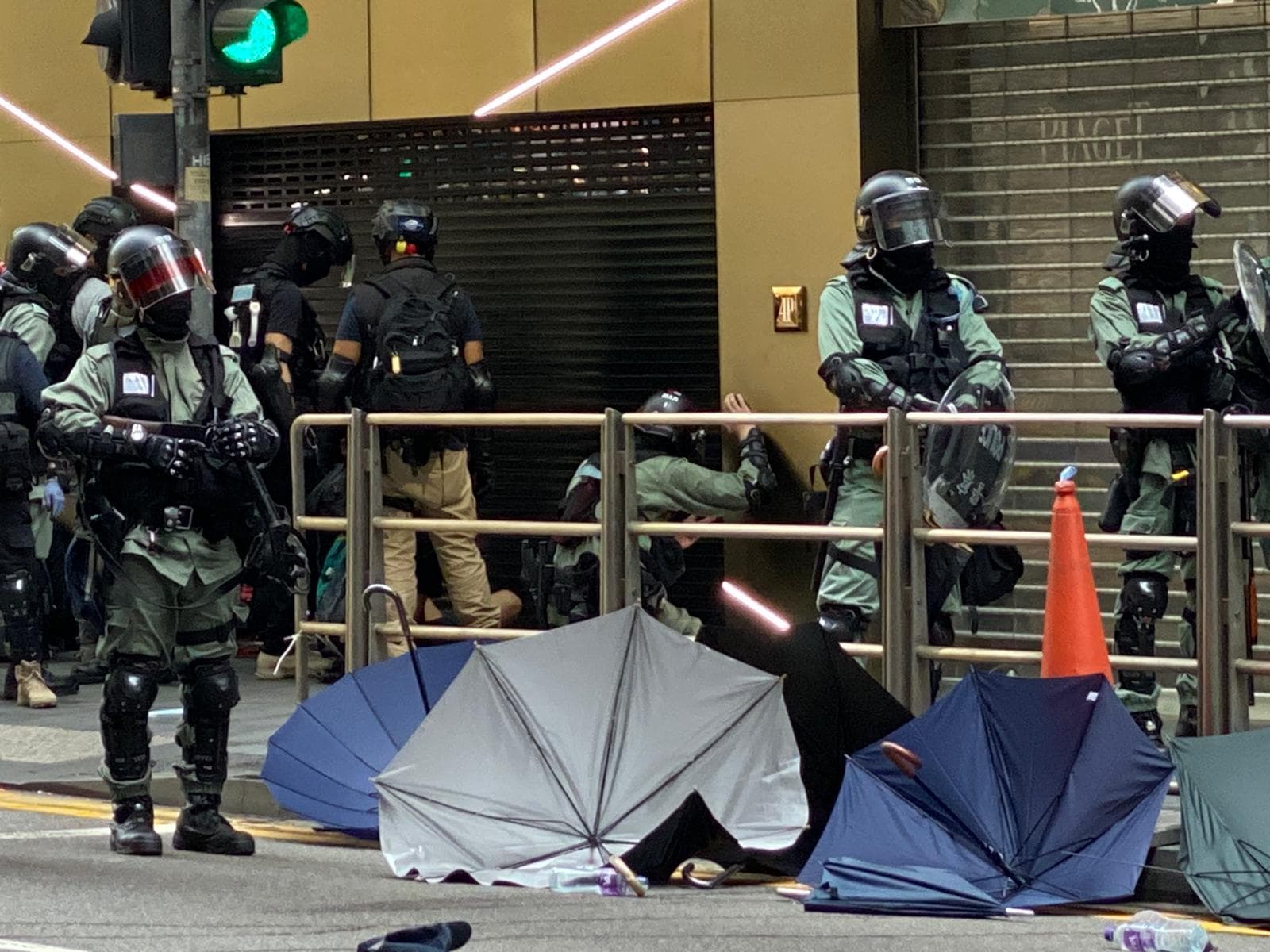 聲明指過去幾日在多區有示威者堵路,有人在馬路上放置鐵釘、在列車路軌上堆放雜物,更有「暴徒」破壞巴士和公共設施,並向載有乘客的列車投擲汽油彈。此外,有蒙面「暴徒」在不同地方集結,在多處高空擲物、在商場內、海底隧道收費亭及其他不同地方破壞和縱火、以致命武器攻擊警務人員、焚燒警車及投擲多枚汽油彈,亦有「暴徒」肆意襲擊其他市民,導致多名市民受傷,其中有人現時仍然危殆。