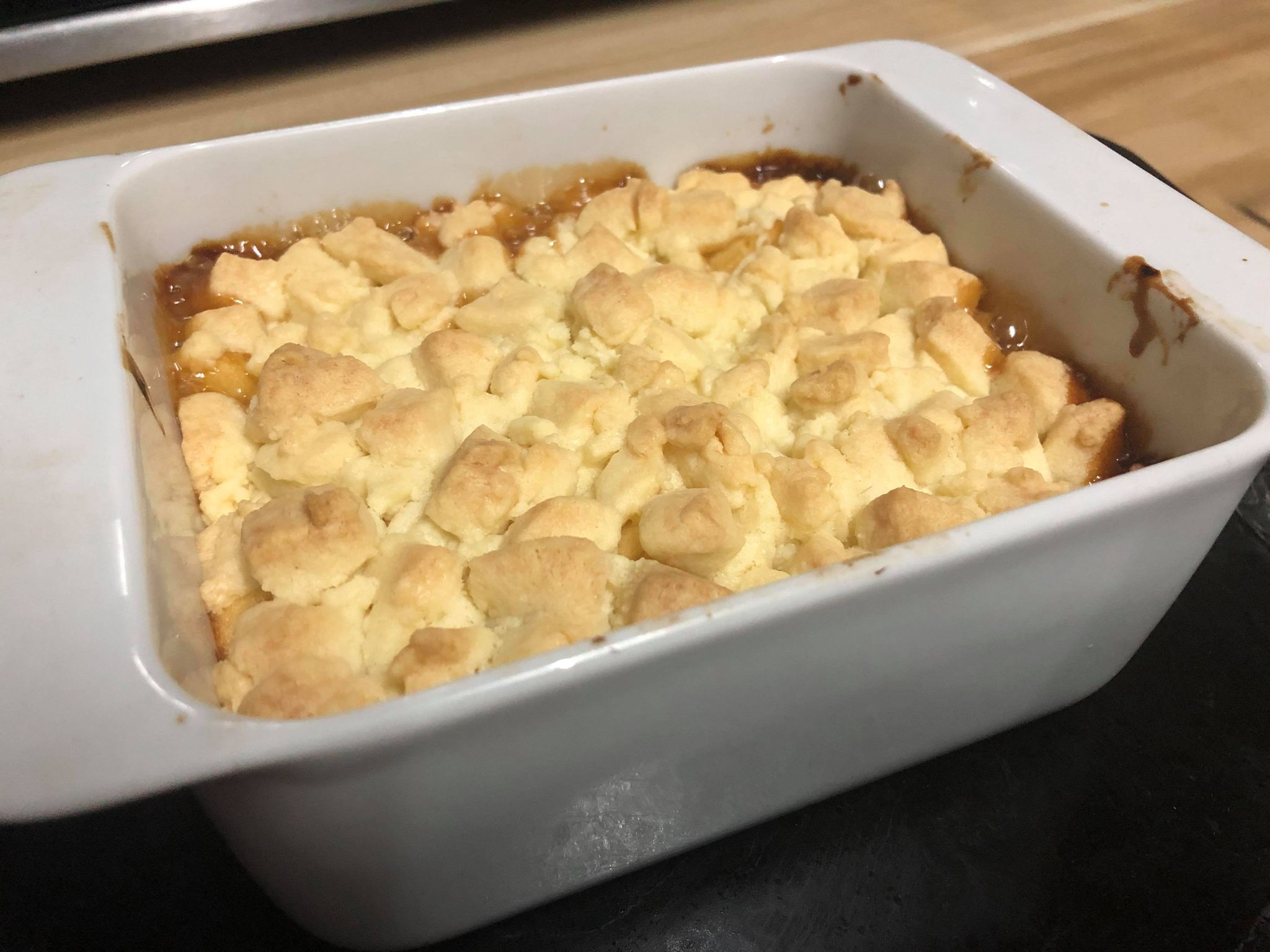 4. 預備焗盤,焗爐預熱,蘋果在底層,上面鋪一層金寶,放入焗爐230度約20分鐘,檢查表面金黃色即可。