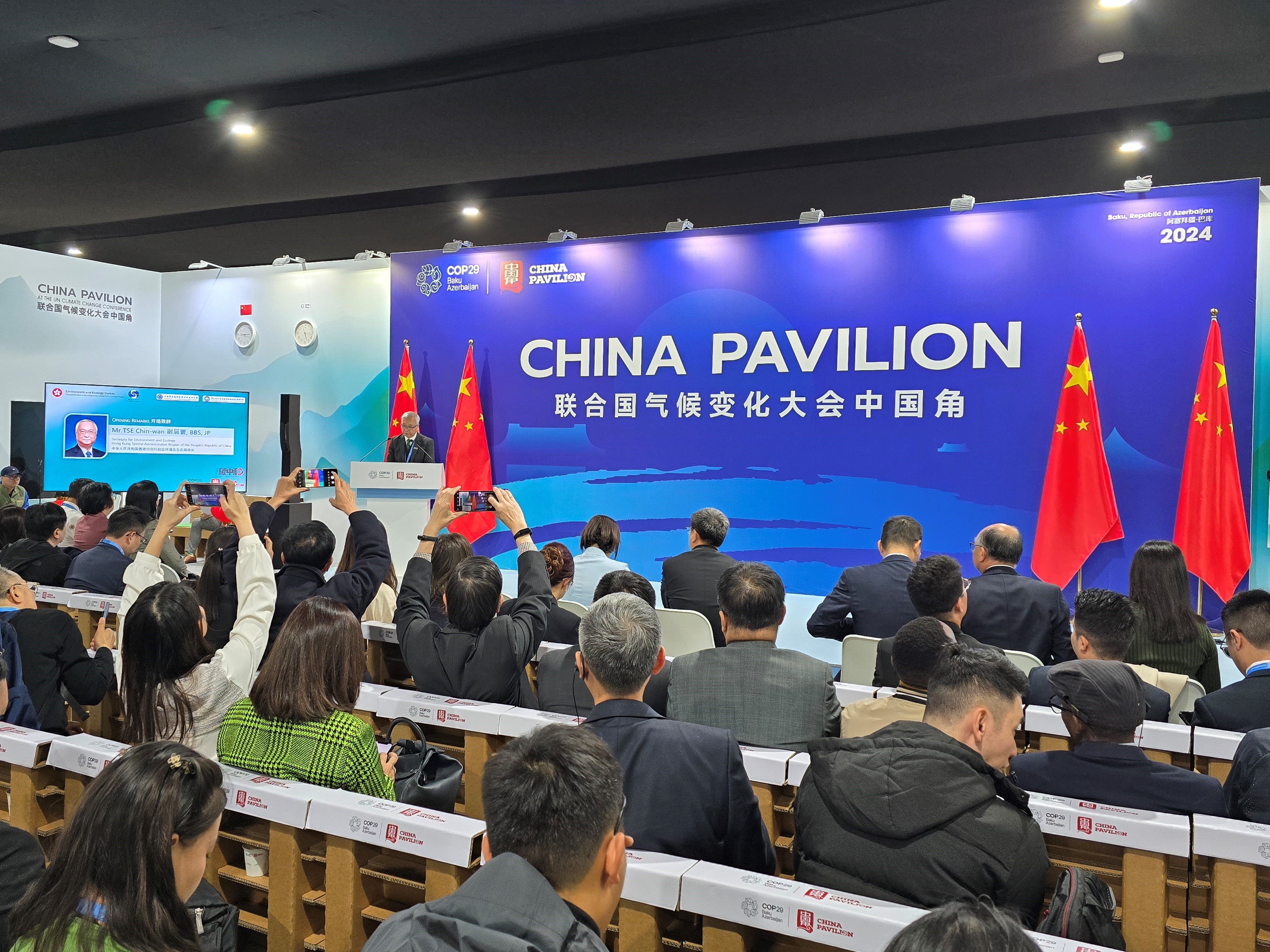 環境及生態局局長謝展寰昨日(11月13日)繼續在阿塞拜疆出席《聯合國氣候變化框架公約》締約方大會第29屆會議(氣候變化大會),並在中國角邊會活動發表演說。