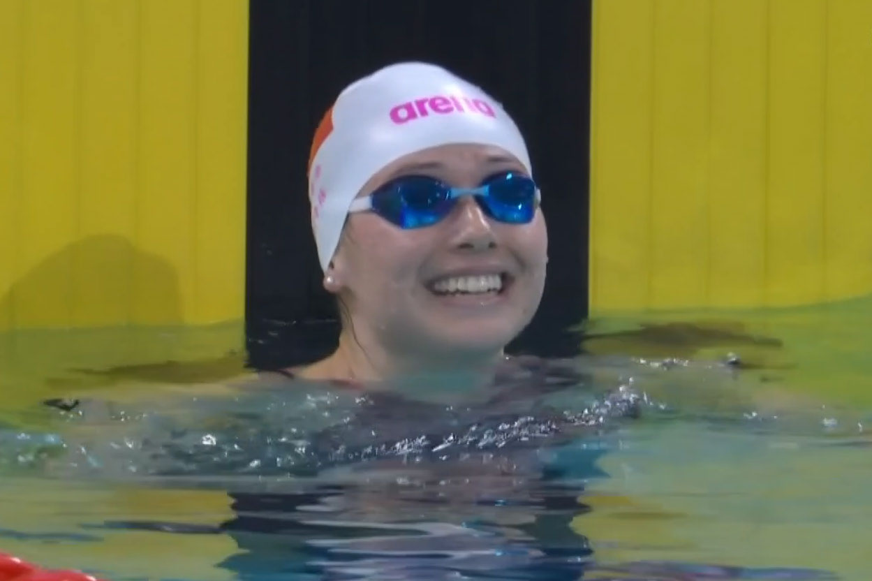全運會最後一個游泳比賽,港隊首席女泳手何詩蓓於5分鐘內連奪兩個銅牌。