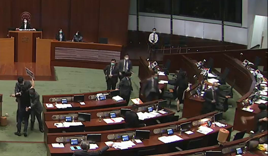 貼文指,在被捕過程中,警方指許智峯於立法會會議室內在國歌法三讀期間,將帶有臭味的液體潑向地下,指其行為引起騷亂,令到會議中斷或有可能中斷,又指令到立法會主席梁君彥煩躁不安,精神受挫。據知,許智峯現被送往西區警署接受調查。