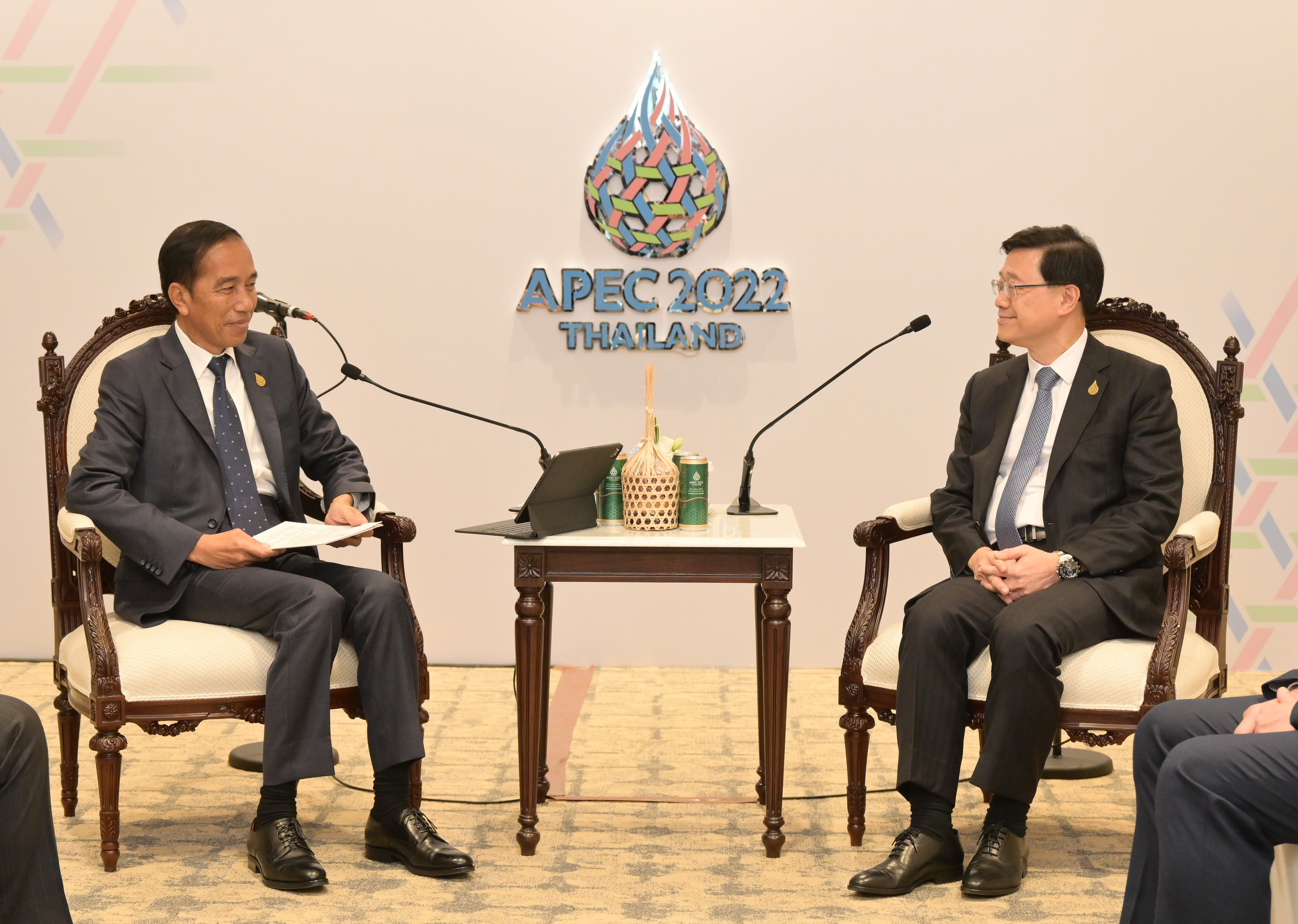 行政長官李家超今日(11月18日)在泰國曼谷出席第二十九屆亞太區經濟合作組織(APEC)領導人非正式會議,與新加坡及印尼的領導人會面。