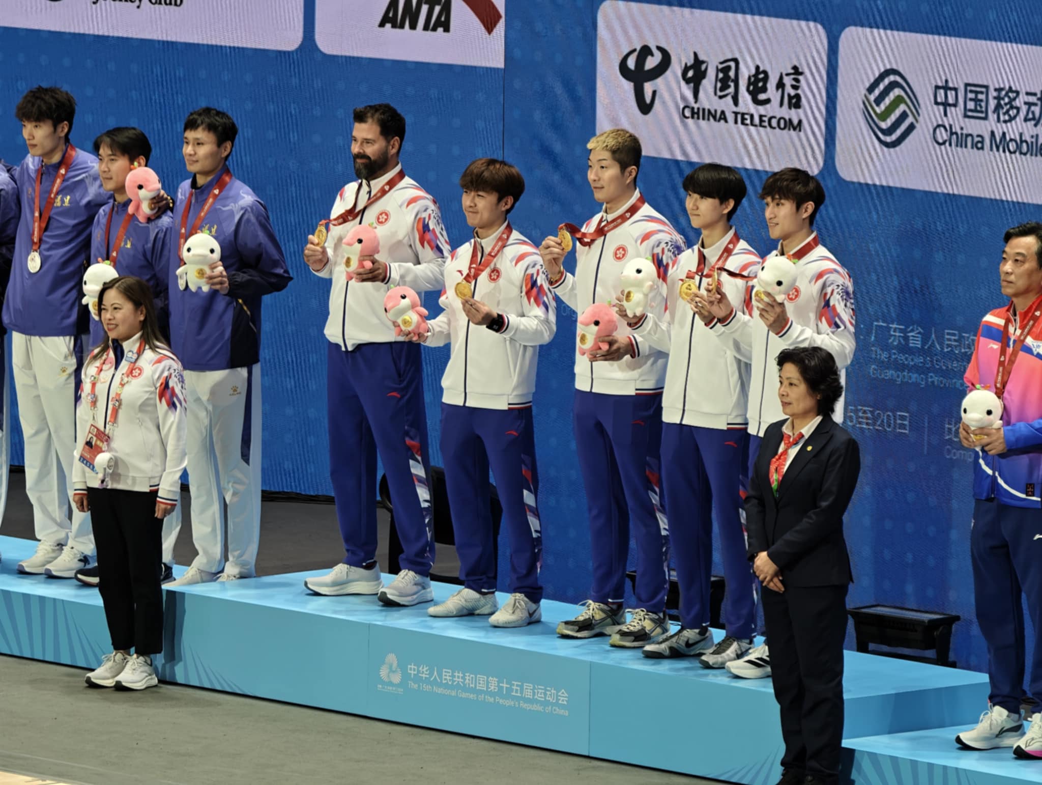 文化體育及旅遊局局長羅淑佩今日(11月19日)熱烈祝賀港隊的張家朗、蔡俊彥、梁千雨和吳諾弘,於全運會奪得男子花劍團體金牌。