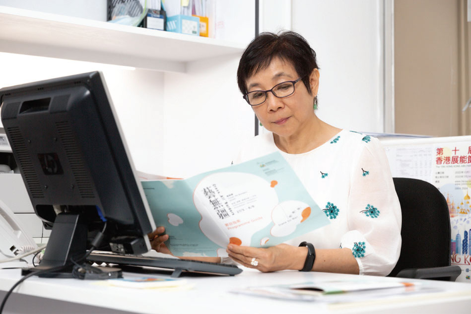 「我加入了社會服務聯會(簡稱社聯)的復康服務部(Rehabilitation Service)後,首個參與的項目就是國際展能藝術節。其時,大會請來世界各地的展能藝術家來港表演,有歌舞、默劇、展覽等。有趣的是,這些演出和展覽,都由傷健人士主導,而無論是否殘疾人士,都一樣可以欣賞。印象最深刻的是,一般人眼中的展覽只可遠觀,還有『請勿觸摸』的警告牌;但當時卻有一個可被觸摸的展覽,讓失明及視障人士都可以欣賞作品。」她笑言自己當年「矇查查」,並沒有細想活動的意義,但見台前幕後均樂在其中,因此印象非常深刻。