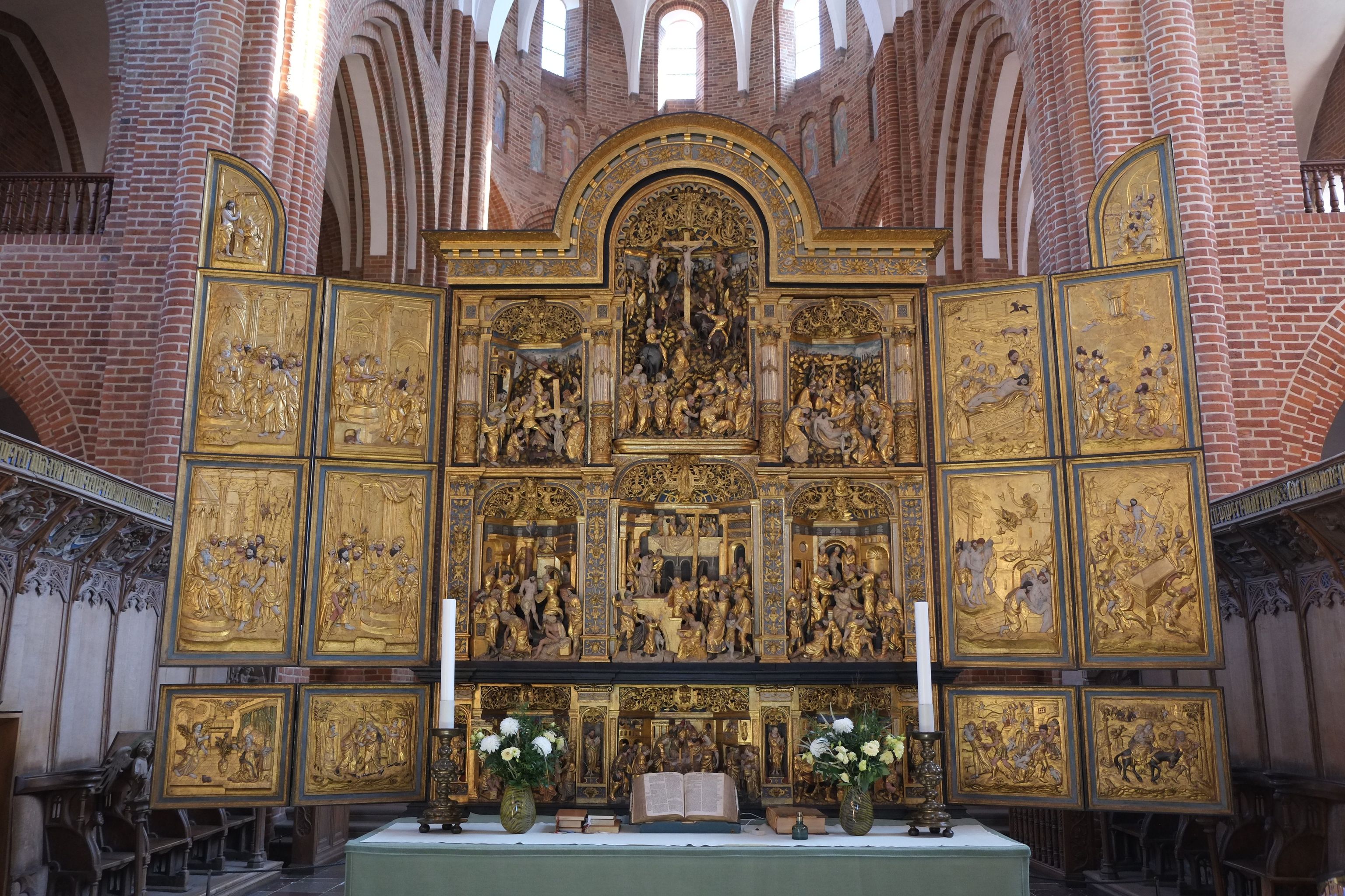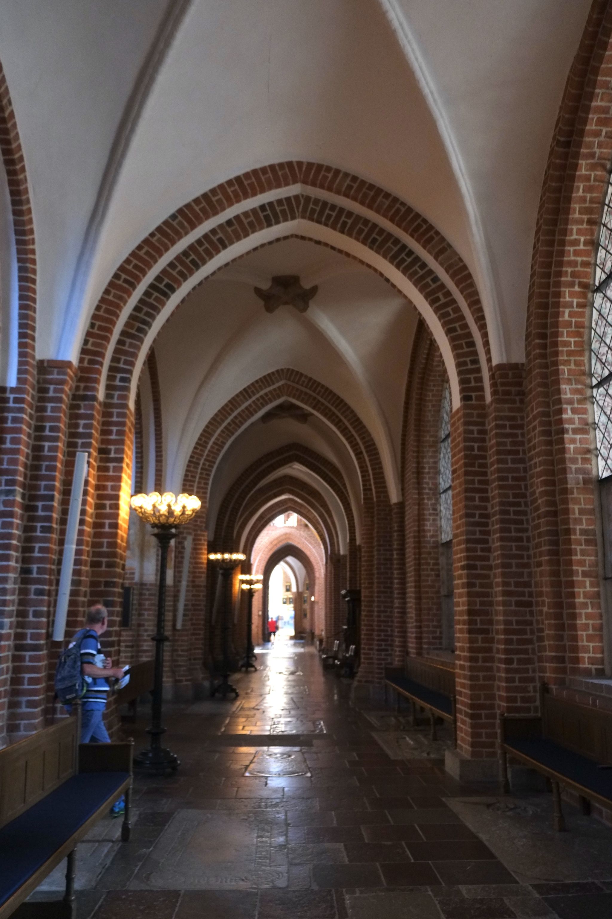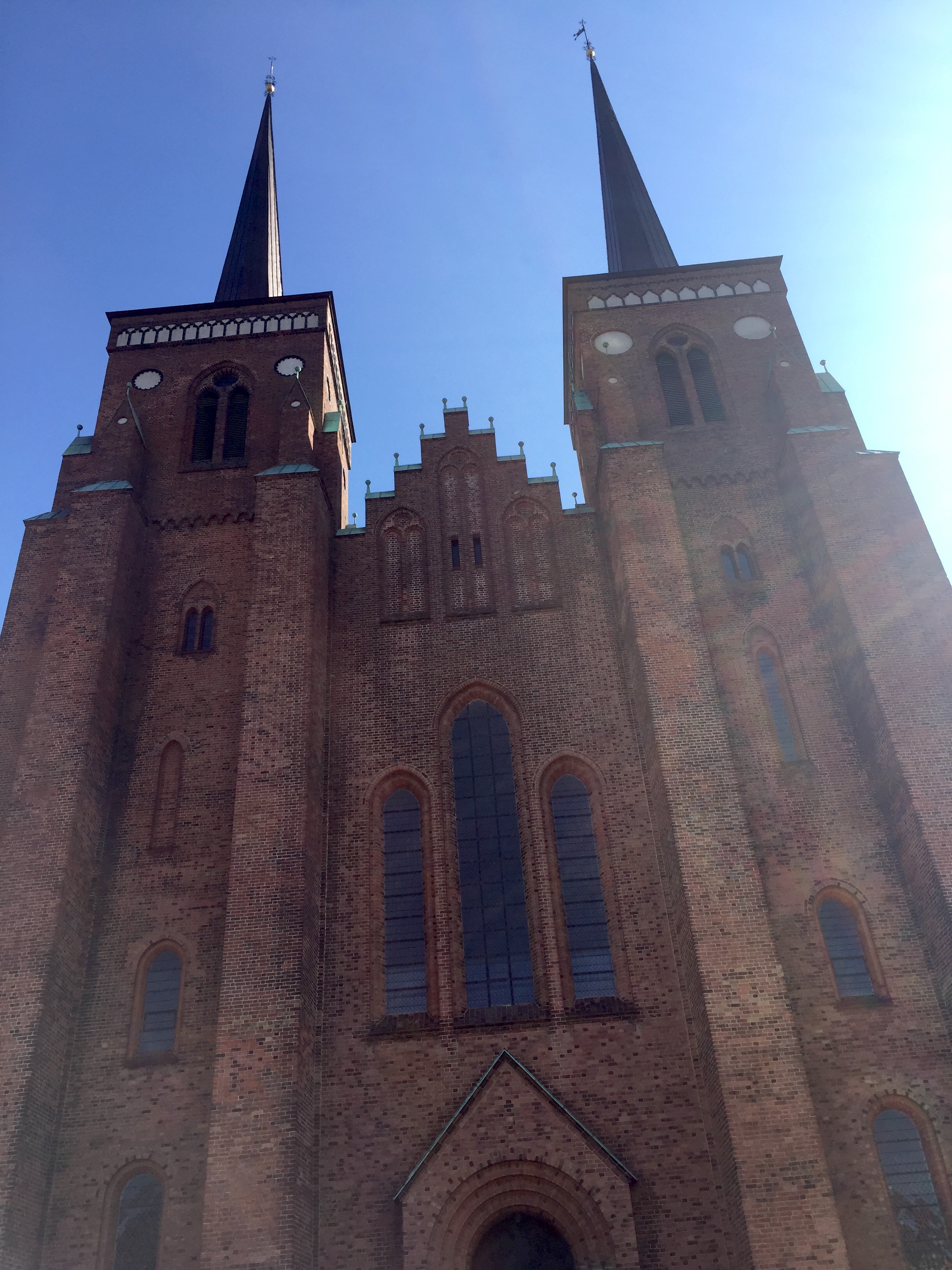 Roskilde Cathedral是丹麥最重要的教堂,是丹麥歷代君主長眠之地,從1995年起更成為UNESCO世界文化遺產。Roskilde在960年時被命為丹麥首都,當時的國王Harald Bluetooth便在這個地點建了教堂,死後便埋葬於此。後來教堂一直又拆又建,十二世紀時開始用磗建築,往後八百年繼續擴展,成為了現今的面貌,也是北歐其中最古老的磚建哥德式建築物。