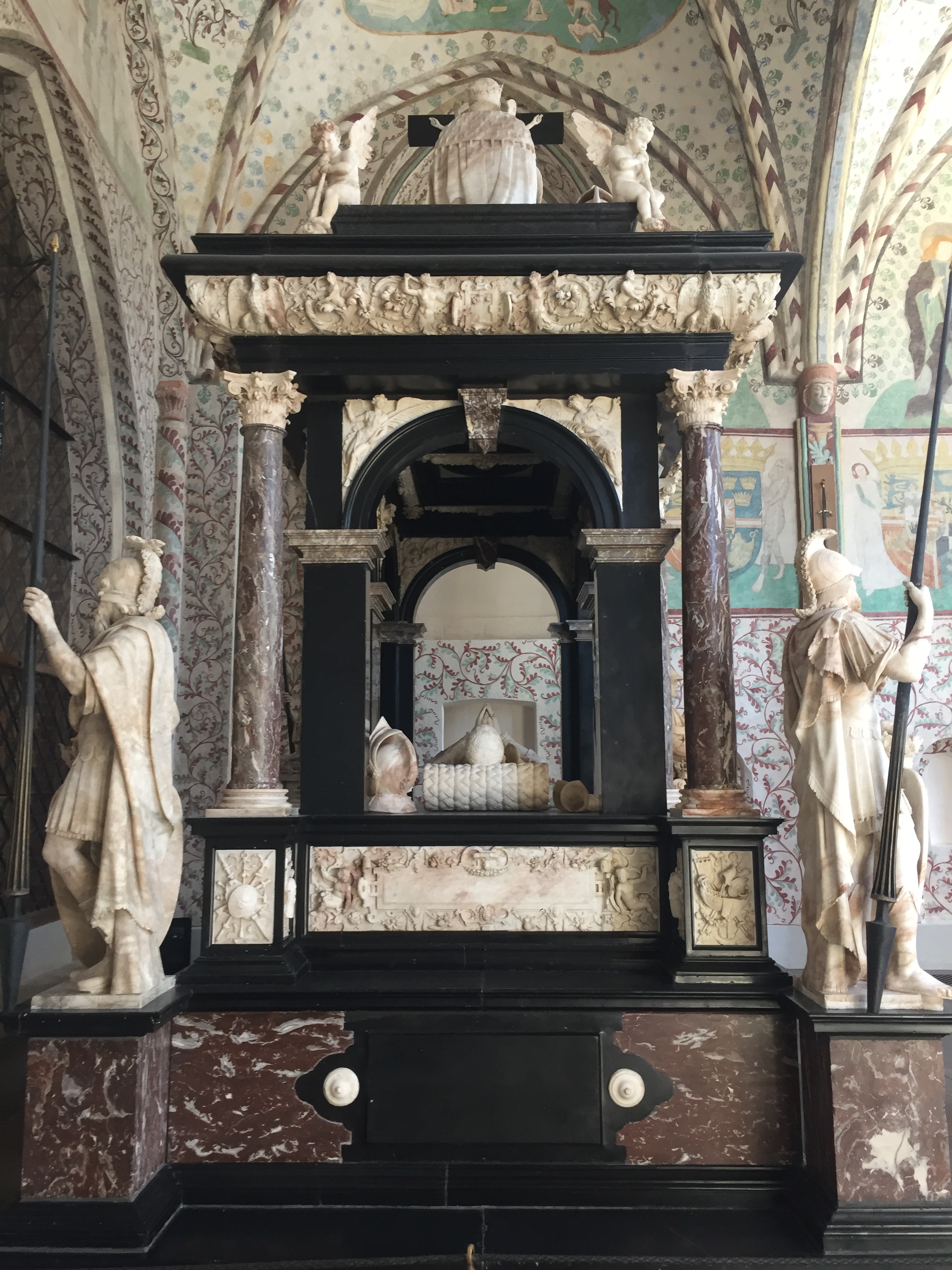 在主教堂的外圈圍著很多小教堂/房間,便是從十五世紀起歷代君主埋葬的地方。每間小教堂各有特色,佈滿雕像和壁畫。君主們的棺材物料也各有不同,有雕刻得非常精緻的雲石棺材,也有君主選用了簡單設計的石棺,丹麥現任的女王死後也將會埋葬於此,她的玻璃棺材也已經造好,也收藏在Roskilde Cathedral裡面。