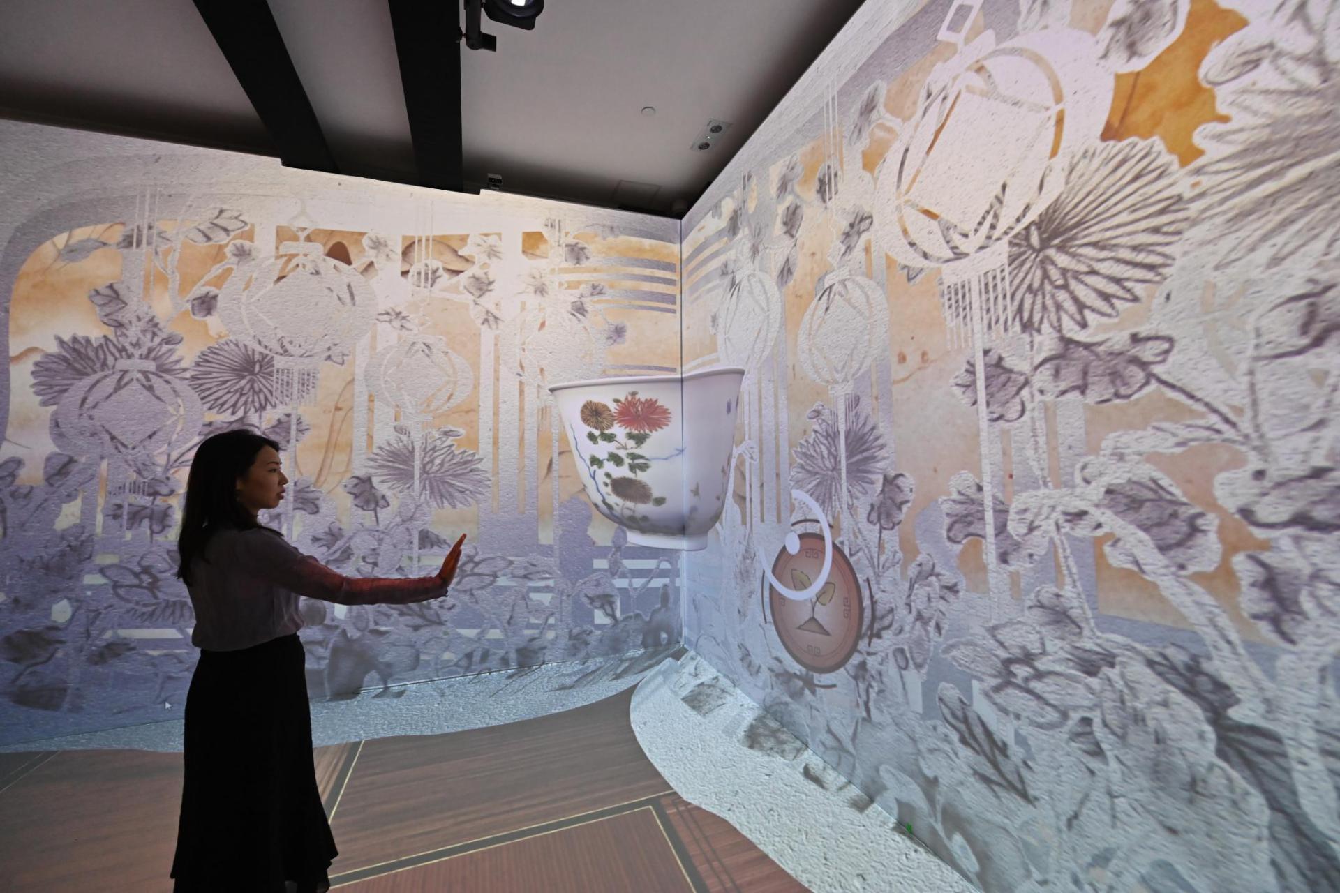茶具文物館同時邀請了藝術家團隊DBIS,將館藏的五彩十二花神杯融入互動裝置《四時庭園》中,透過藝術與科技結合,觀眾可與花神杯互動,配合自身的肢體動作引導花神生長,孕育一個充滿活力的虛擬花園。