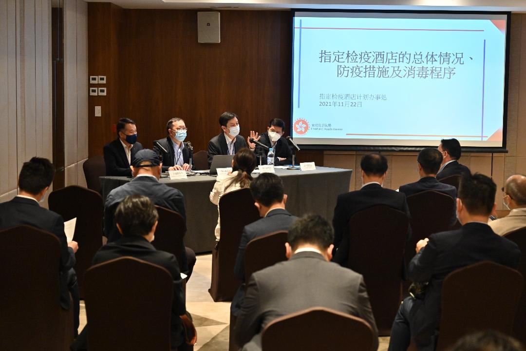 專家團今早首先到一間位於灣仔的指定檢疫酒店,了解其運作模式及操作流程。專家團並到訪位於梁顯利油麻地社區中心的社區檢測中心,了解其運作、服務安排及採樣流程。專家團隨後轉往大埔,到訪一間由衞生署認可的私營化驗所,了解其運作及聽取有關本港最新病毒檢測能力的簡報。