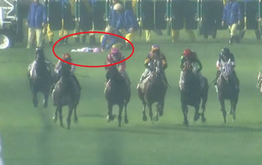 來港客串一天的澳洲騎師安國倫,今日(11月25日)下午於沙田馬場第九場賽事中,出閘後不久即被「美麗寶寶」拋下,片段所見安國倫墮馬後未有郁動。