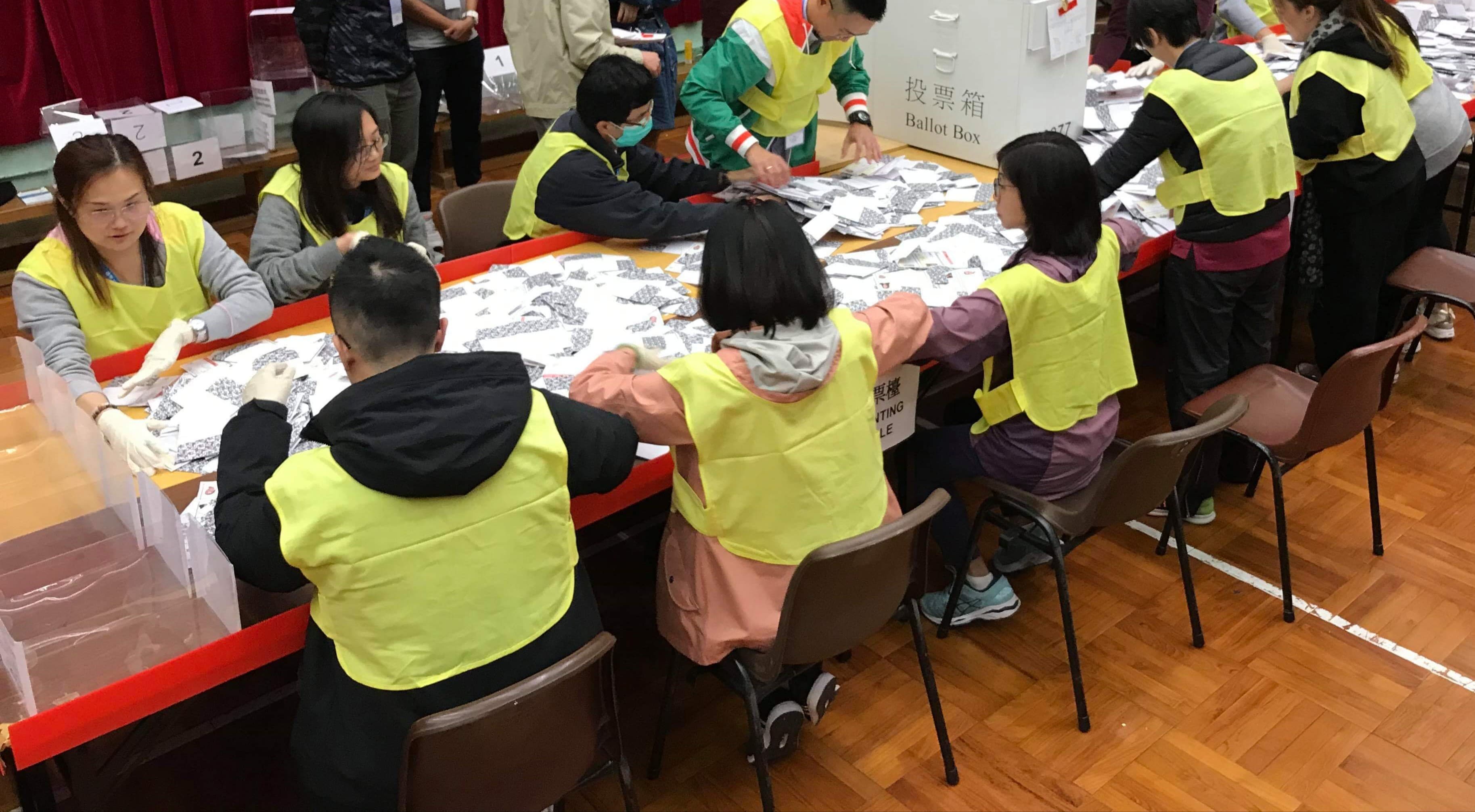2019年區議會選舉452個選區的點票工作,終於今日(11月35日)下午12時25分順利完成。點票在昨晚投票結束後展開,約2,940,000萬張選票的點算工作約用了13小時完成。