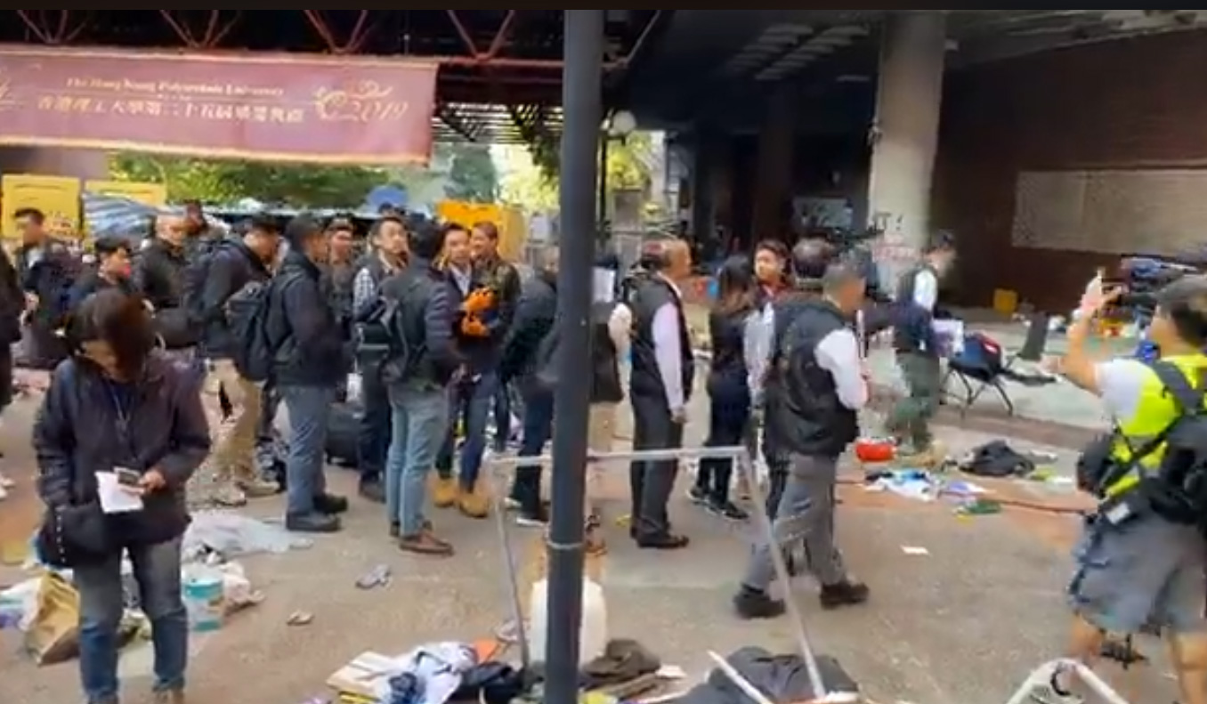 理工大學被圍封踏入第12日,警方及消防等部門組成的安全小組,今早(11月28日)進入校園。