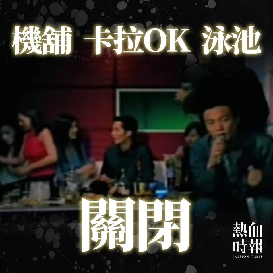 特首林鄭月娥宣布,除了早前公布已經關閉的酒吧和酒館、浴室、夜店、夜總會及派對房間,本周三起遊戲機中心、遊樂場所、公眾娛樂場所、卡拉OK場所、麻將天九耍樂場所和泳池,全部須要關閉。個別的政府表演場地只會適度開放,作表演排練或線上表演。