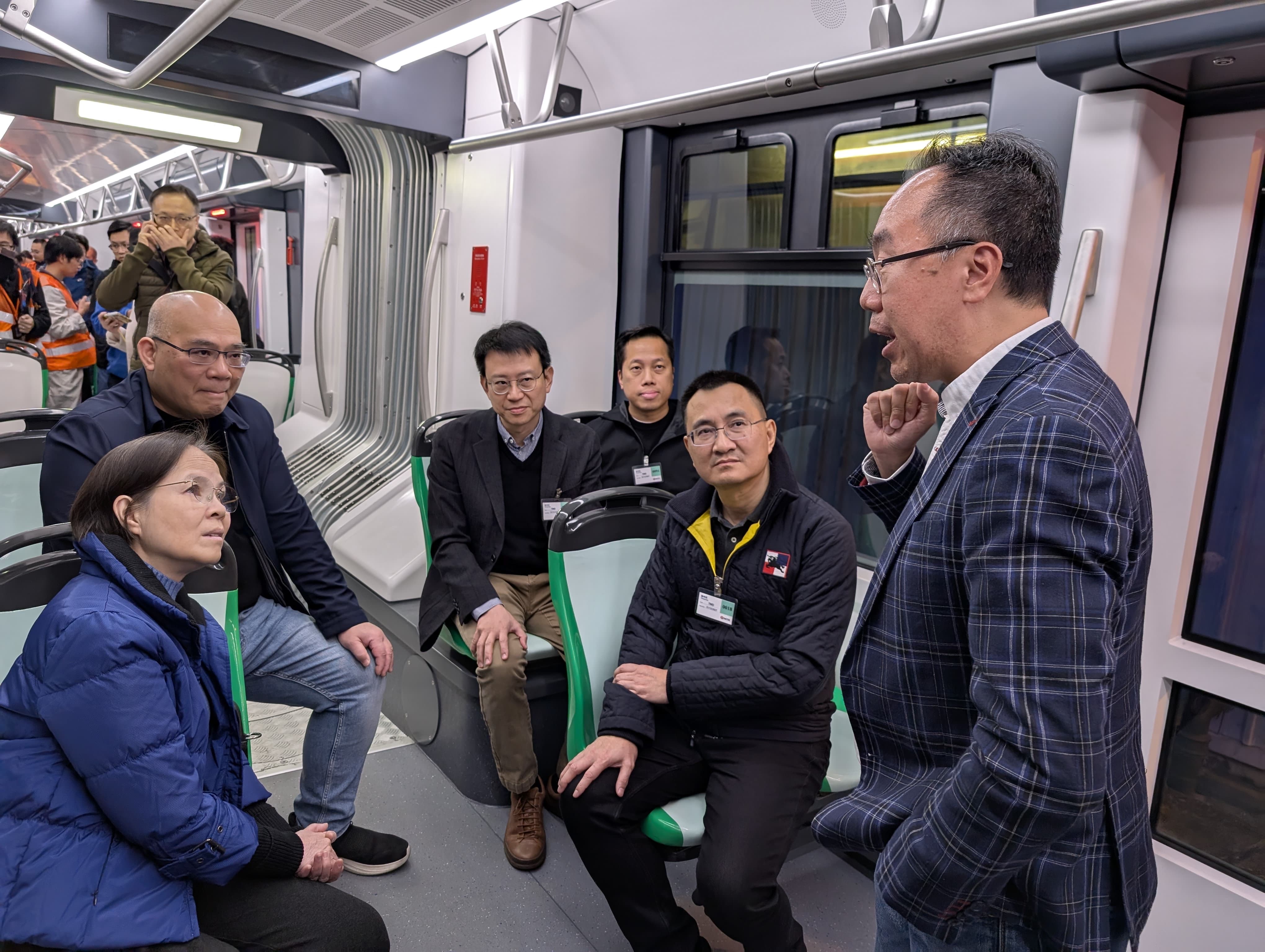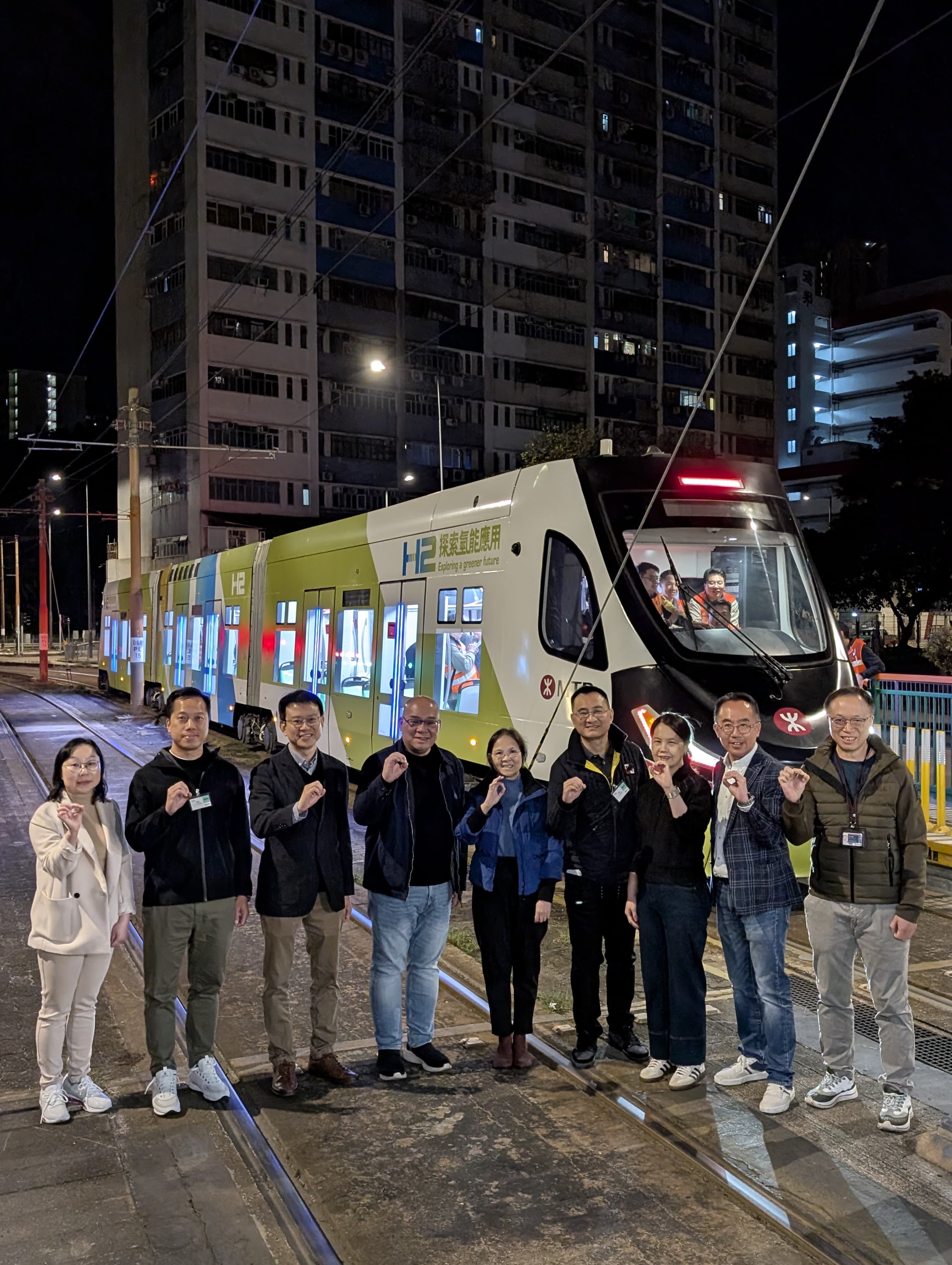 會後,工作小組主席環境及生態局副局長黃淑嫻與工作小組成員在今晨(12月1日)參觀香港鐵路有限公司正在進行的氫能源有軌電車研究試驗項目。該項目涉及氫能源列車在晚上非服務時間以非載客形式行駛部分屯門輕鐵路段,以收集數據評估氫能作為港鐵網絡潔淨能源選擇的技術可行性。(政府新聞處圖片)