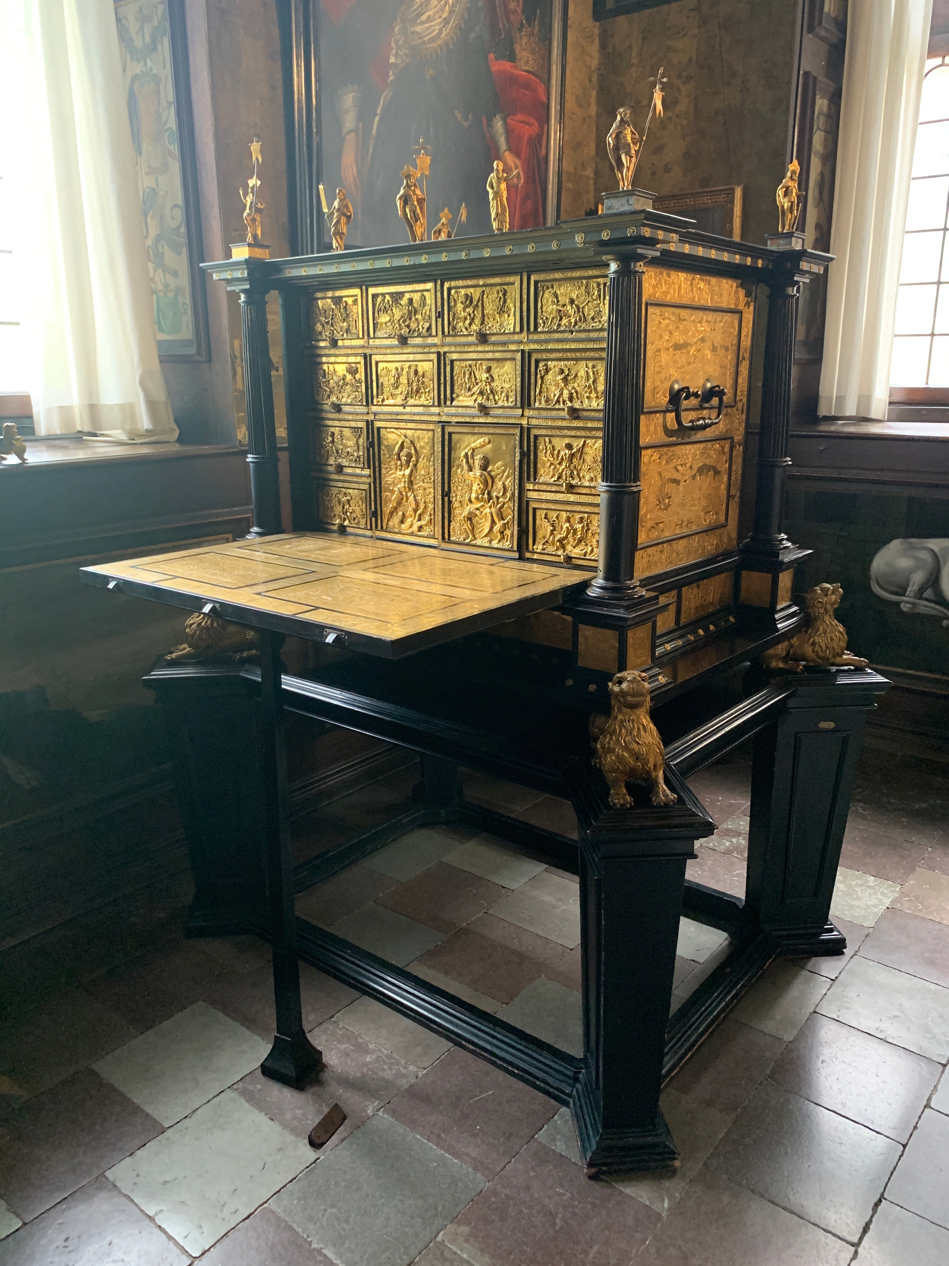 進入Rosenborg Castle後,就被收藏品的密集程度嚇了一跳。這個不算很大的城堡收藏著驚人數量的寶藏!入面的每一幅牆填滿了油畫,每一個角落都塞滿藝術品及和藝術品沒分別的傢俬,甚至乎連門框上都會放東西,十分誇張。城堡內收藏品多得大部分都沒空間放置實體的介紹牌只有號碼,可以進入城堡的網站一邊參觀一邊憑號碼看詳細的介紹,有些比較重要的展品更有QR code讓人直接進入介紹的頁面。