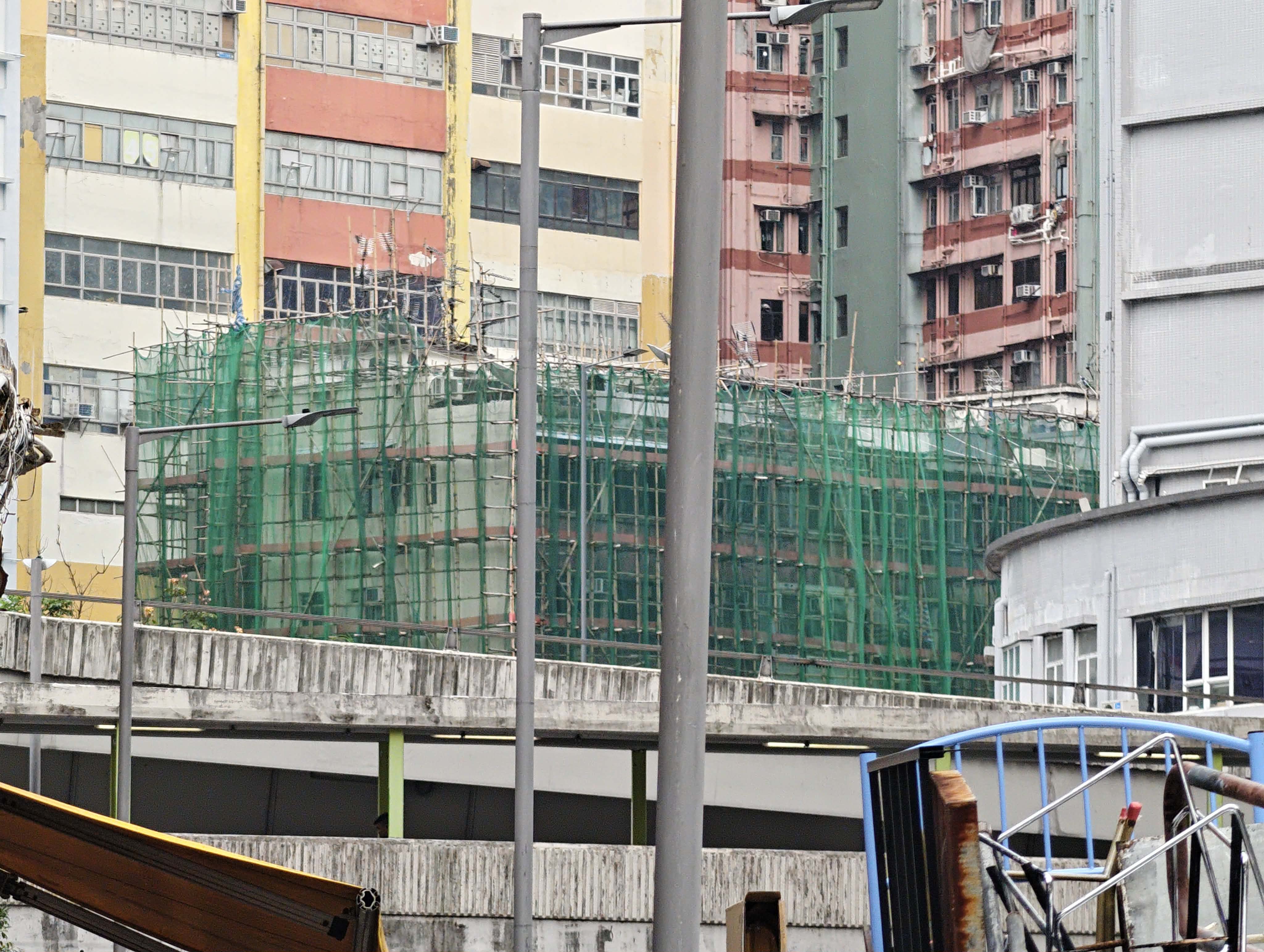 根據當局估計,目前約有200多幢私營樓宇,以及10多幢公型樓宇,正進行大維修並有使用棚架。