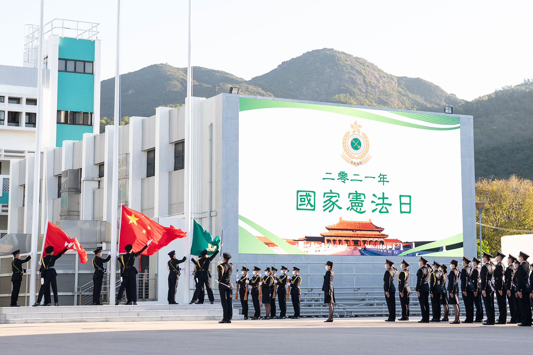 今日(12月4日)是「國家憲法日」,特區政府舉辦「國家憲法日」座談會,以增強全社會的《憲法》意識及弘揚《憲法》精神。此外,為配合「國家憲法日」,保安局轄下六個紀律部隊,包括警務處、入境事務處、海關、懲教署、消防處及政府飛行服務隊,今早8時分別舉行升旗儀式,藉此展現愛國情懷和提高對國家的歸屬感,相關部門首長均有出席觀禮。