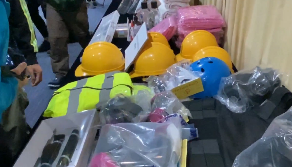 警方表示,在餐廳內搜獲懷疑伸縮棍、15個頭盔、15個防毒面罩、1個盾牌、2件反光背心、3個護目鏡及印有標語的橫額。兩名男子涉及「管有違禁武器」及「藏有工具可作非法用途」罪,目前保釋候查。