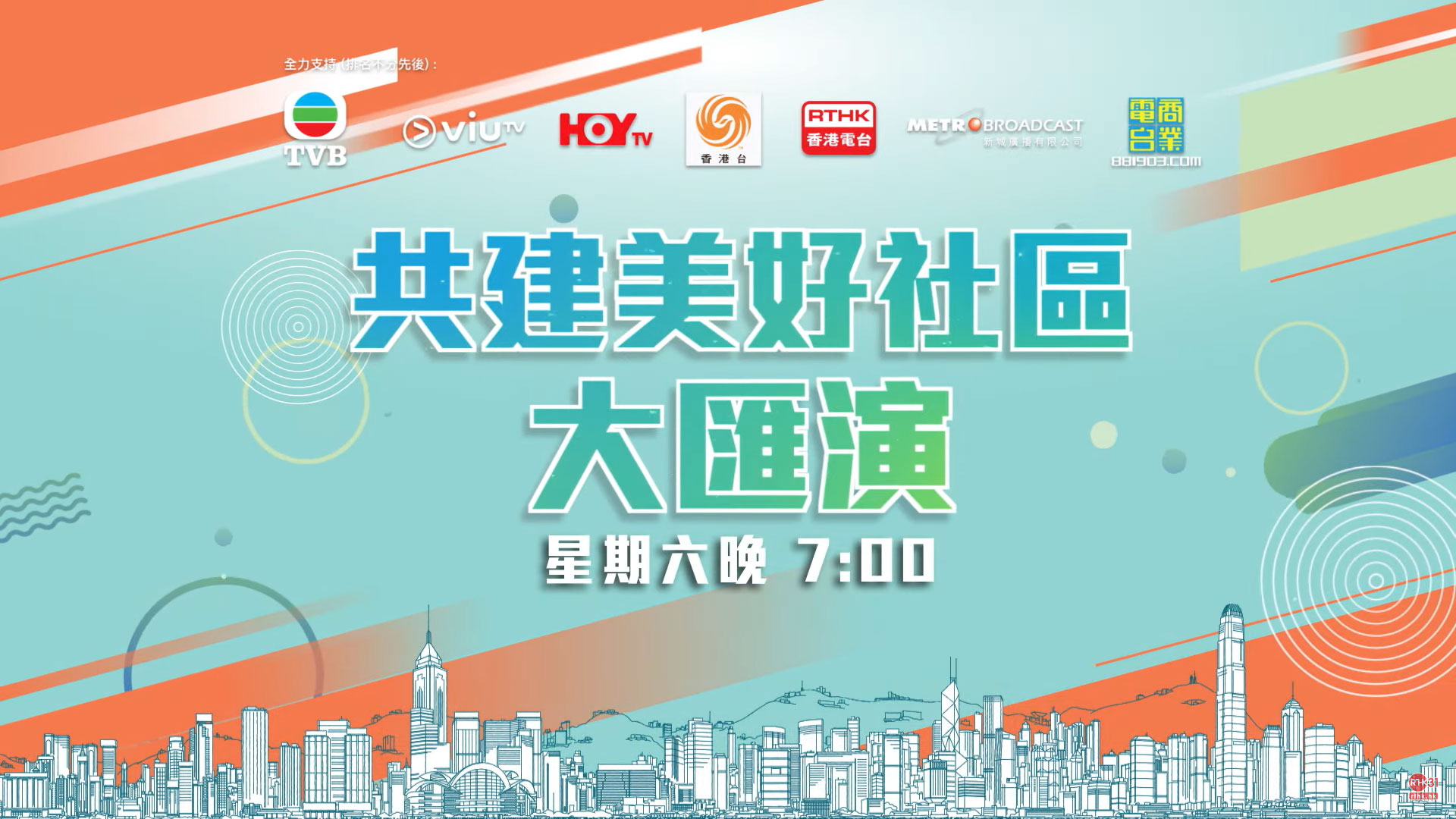 大匯演將於本周六(12月9日)晚上7時至10時舉行,並會由本港七間電子傳媒,即無綫電視、ViuTV、HOY TV、鳳凰衛視、香港電台、新城電台、商業電台(排名不分先後)共同作現場聯播。未能索取入場券的市民可安坐家中欣賞。