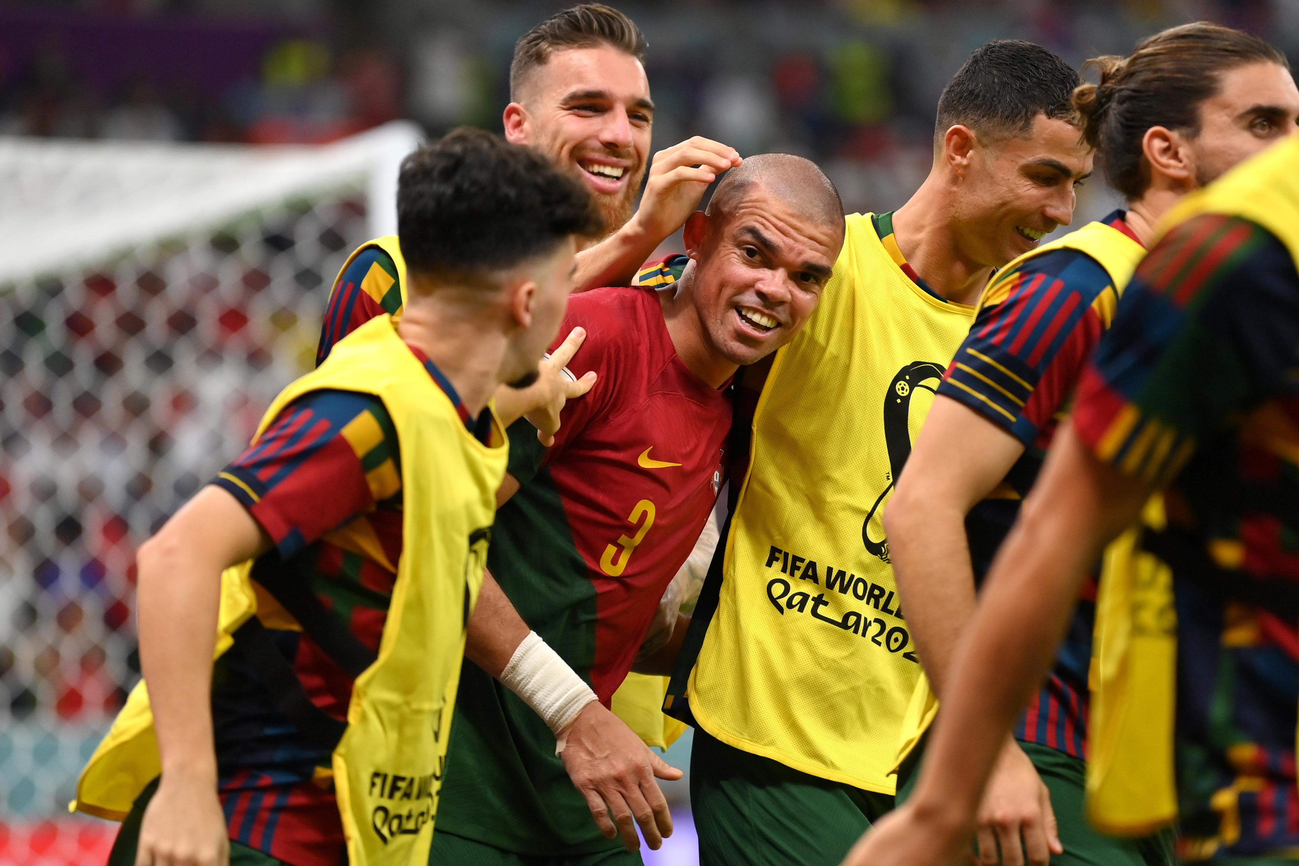 盛傳會到沙特豪門艾納斯搵食的C朗,今場未獲正選,豈料打簡單足球的葡萄牙更有威脅,上半場17分鐘,代替C朗打正選的21歲賓菲加前鋒干卡路拉莫斯,於禁區內轉身勁射近柱得手。33分鐘,葡萄牙一記角球攻勢,39歲的比比高人一等頂成2:0,他成為歷來世界盃決賽周入波第2年長球員,僅次於喀麥隆名宿米拿。