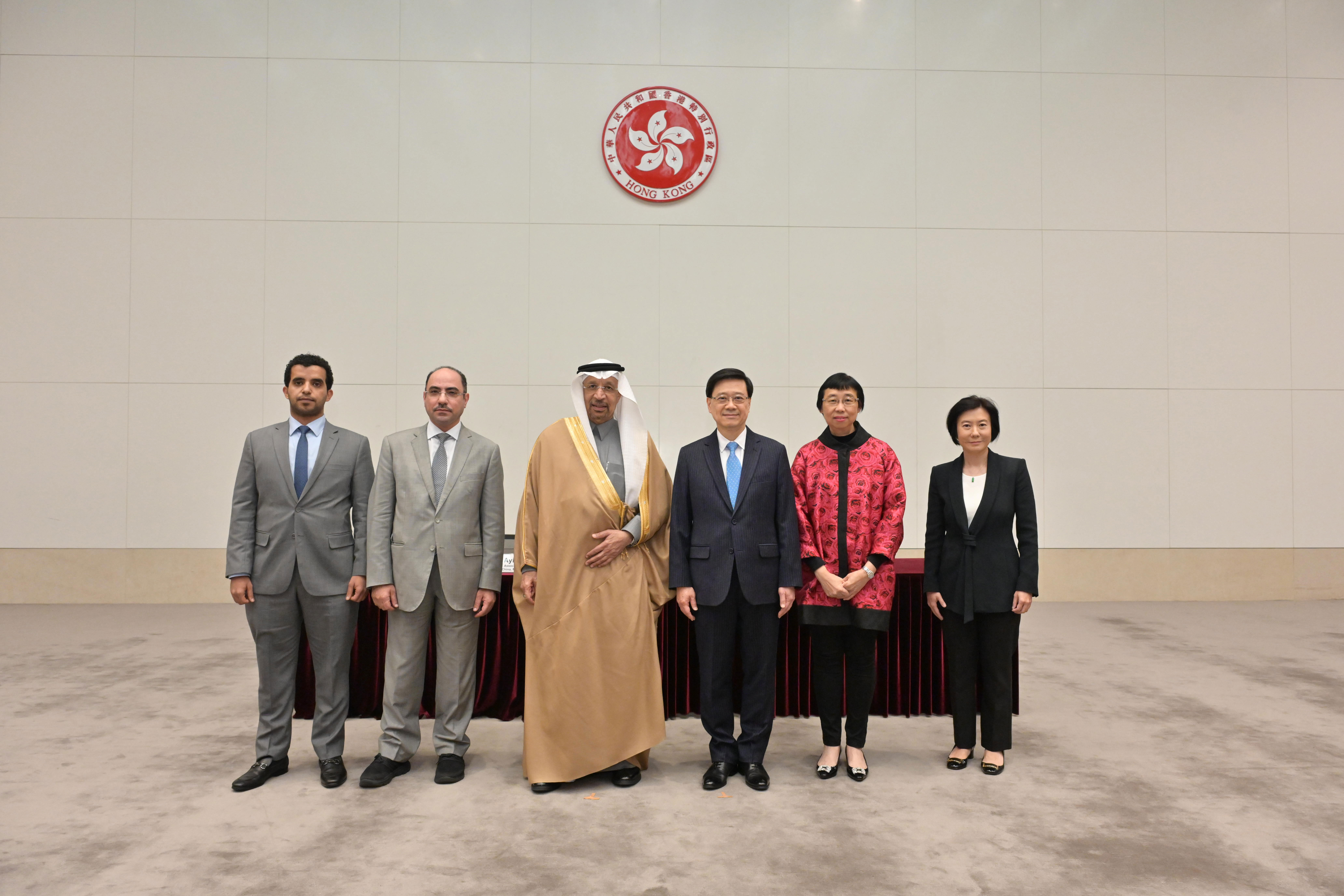 在行政長官李家超及沙特阿拉伯投資大臣Khalid Al-Falih見證下,投資推廣署署長劉凱旋和沙特阿拉伯王國投資部中國辦公室副主任Ayidh Alyami簽署該備忘錄。