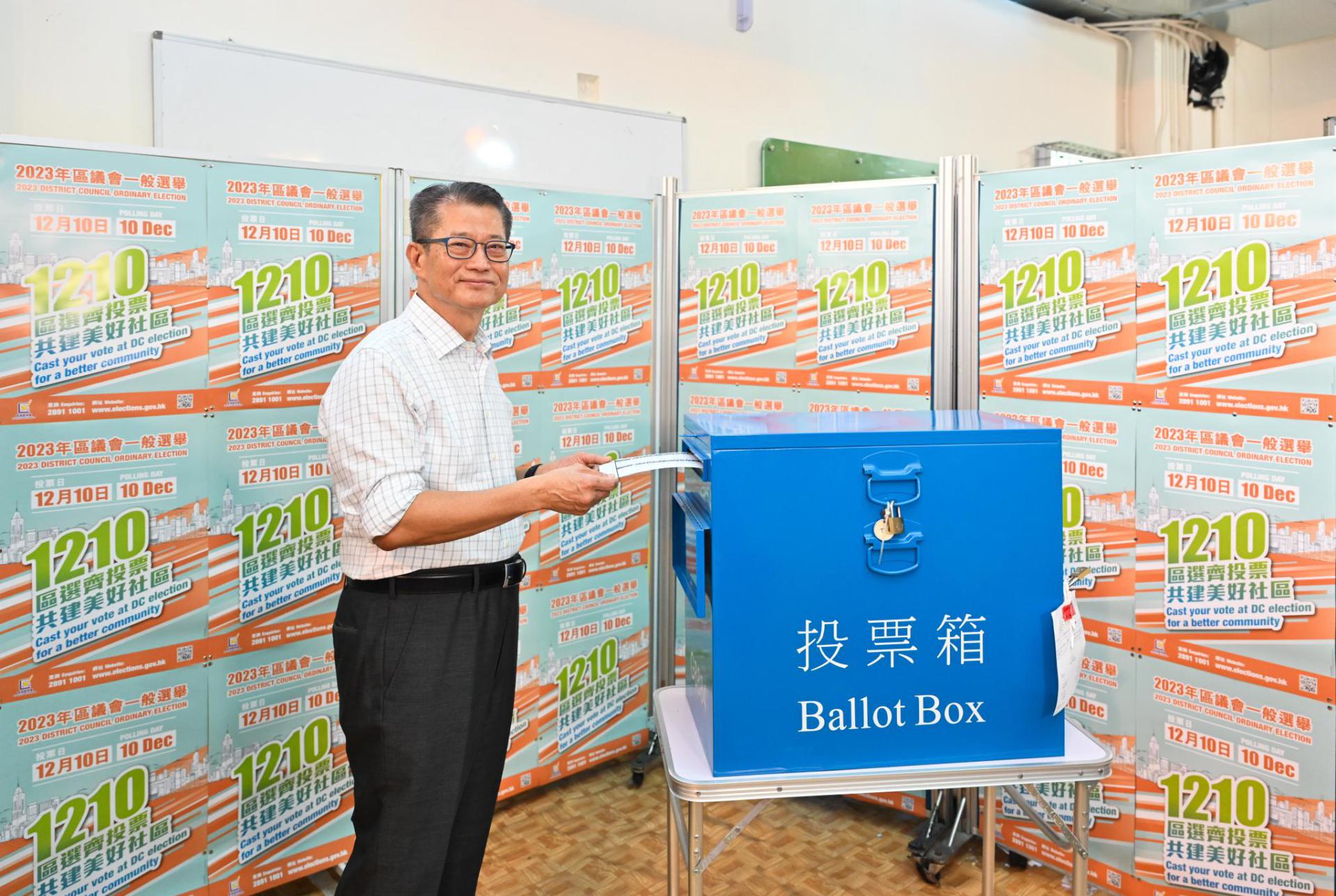 今天(12月10日)是區議會選舉投票日,財政司司長陳茂波早上已在所屬選區的票站投票。