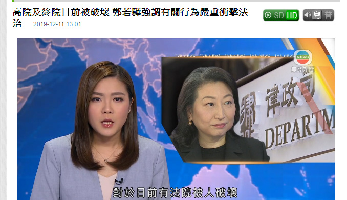 結果TVB12月11日的午間新聞,報道鄭若驊的一段,就用了法院縱火的事件作主題。