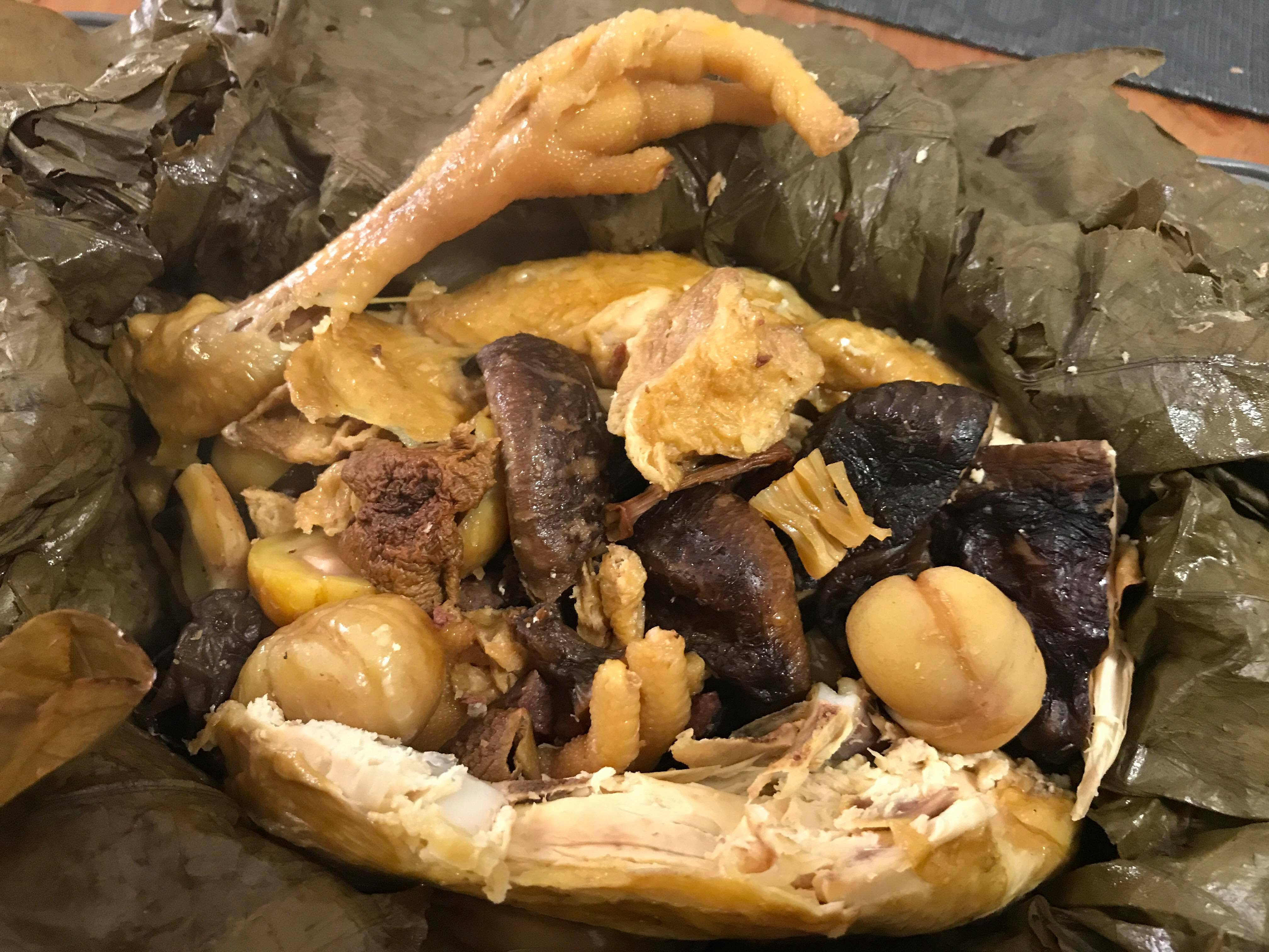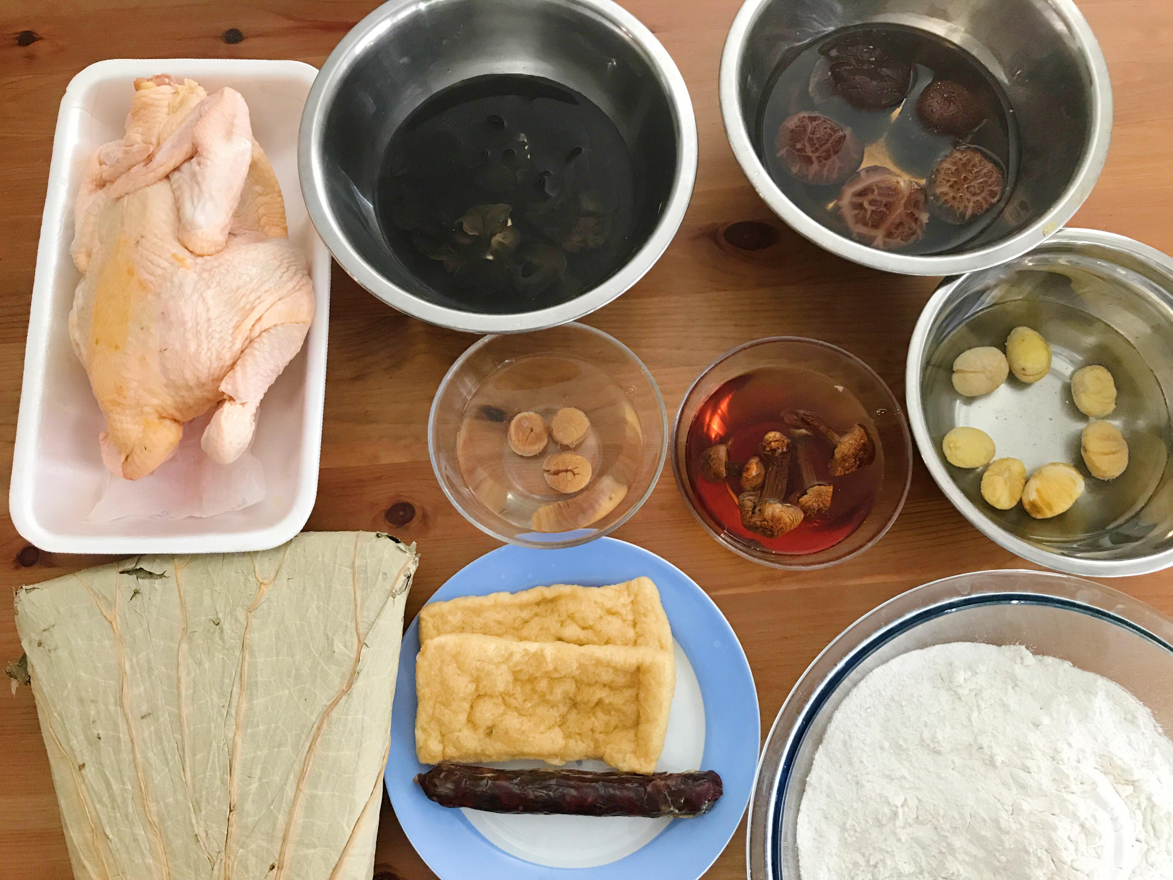 醃雞只用了生抽、老抽、酒,也可以加些香料也可以呀,至於內餡就由我家的雪櫃和廚櫃內找出來,其實內餡配搭因人而異,可以加些自己的創意做出獨特的卜卜雞。