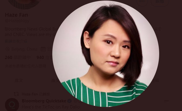 彭博社表示,涉事記者范若伊(Haze Fan)星期一與編輯聯絡後不久,就被便衣保安人員帶走。