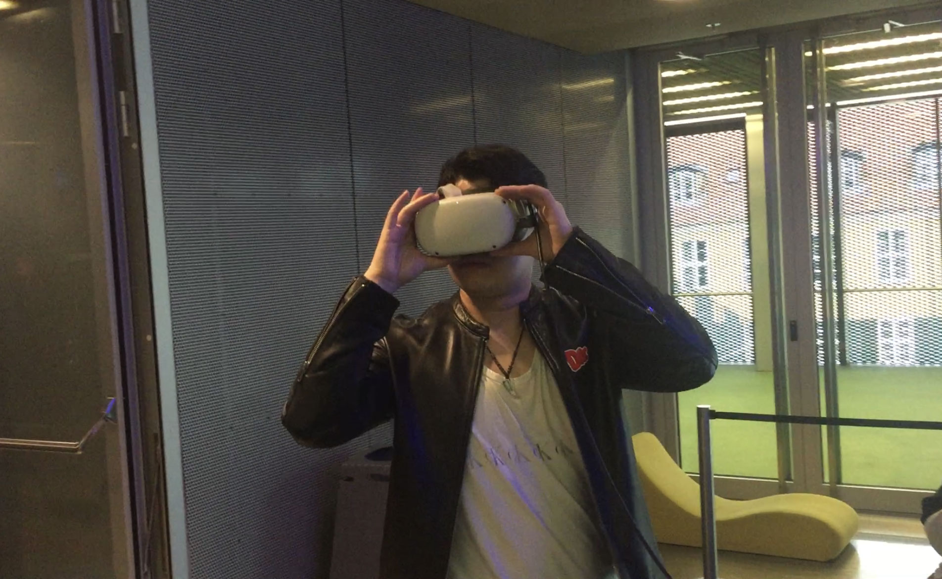 DAC裡面還有好玩的常設裝置,首先有一個讓你感受在高樓大廈望向地面的VR裝置,對丹麥人來說應該比較有新鮮感,因為丹麥真的沒有很高的建築物。不過,雖然我們習慣高樓大廈生活,這個VR體驗還是很刺激的。