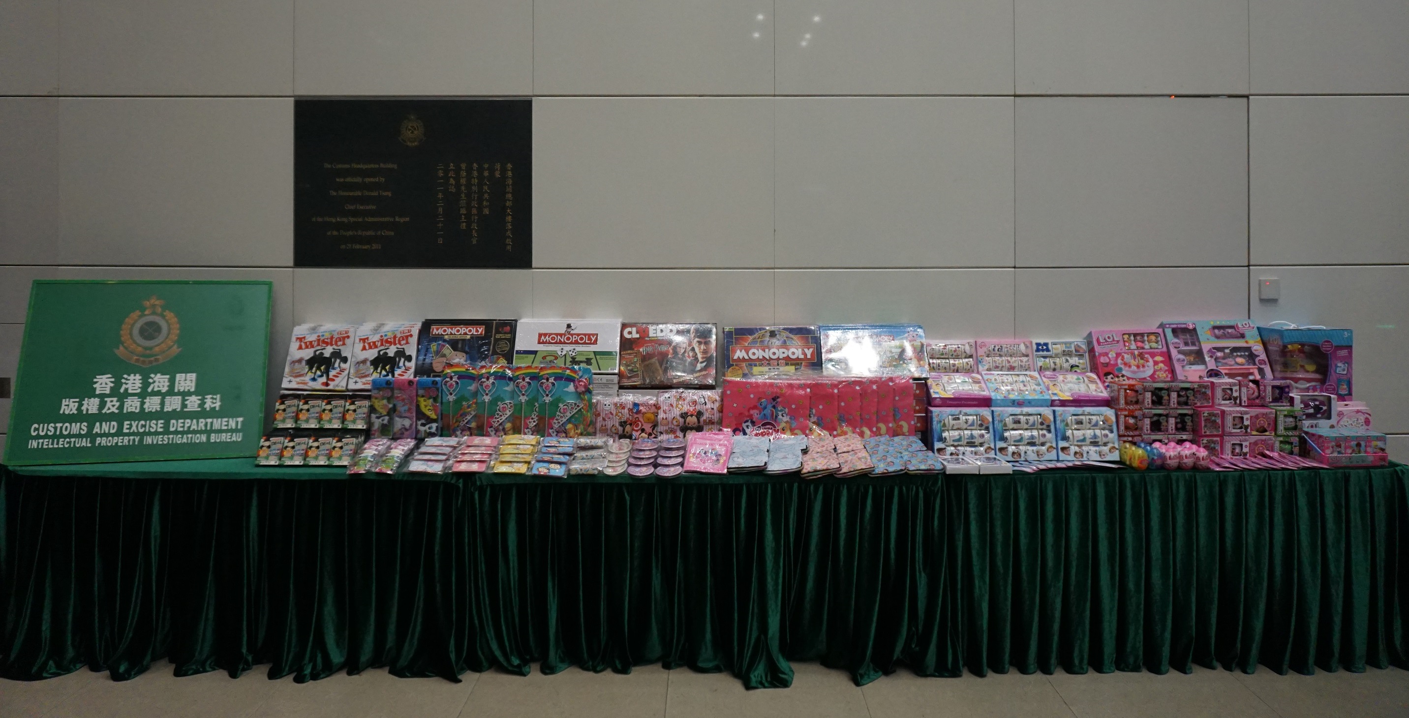 海關早前接獲舉報,指市面上有店舖售賣懷疑冒牌玩具。在商標持有人的協助及經深入調查後,海關人員昨日採取執法行動,掃蕩6間位於深水埗的店舖,共檢獲約1000件懷疑冒牌物品,包括桌上遊戲、兒童玩偶及貼紙。