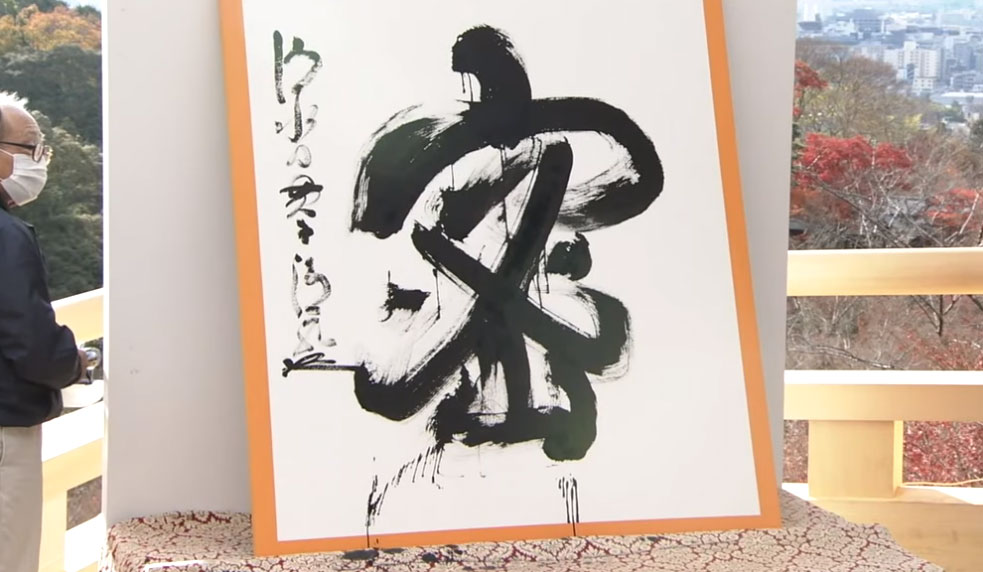 清水寺住持森清范在高1.5米、寬1.3米的和紙上,用特大毛筆揮毫寫下「密」字。森清范表示,「密」有親近的意思,雖然在物理上分開,但在心裡與人保持著聯繫,祝願明年是美好的一年。”