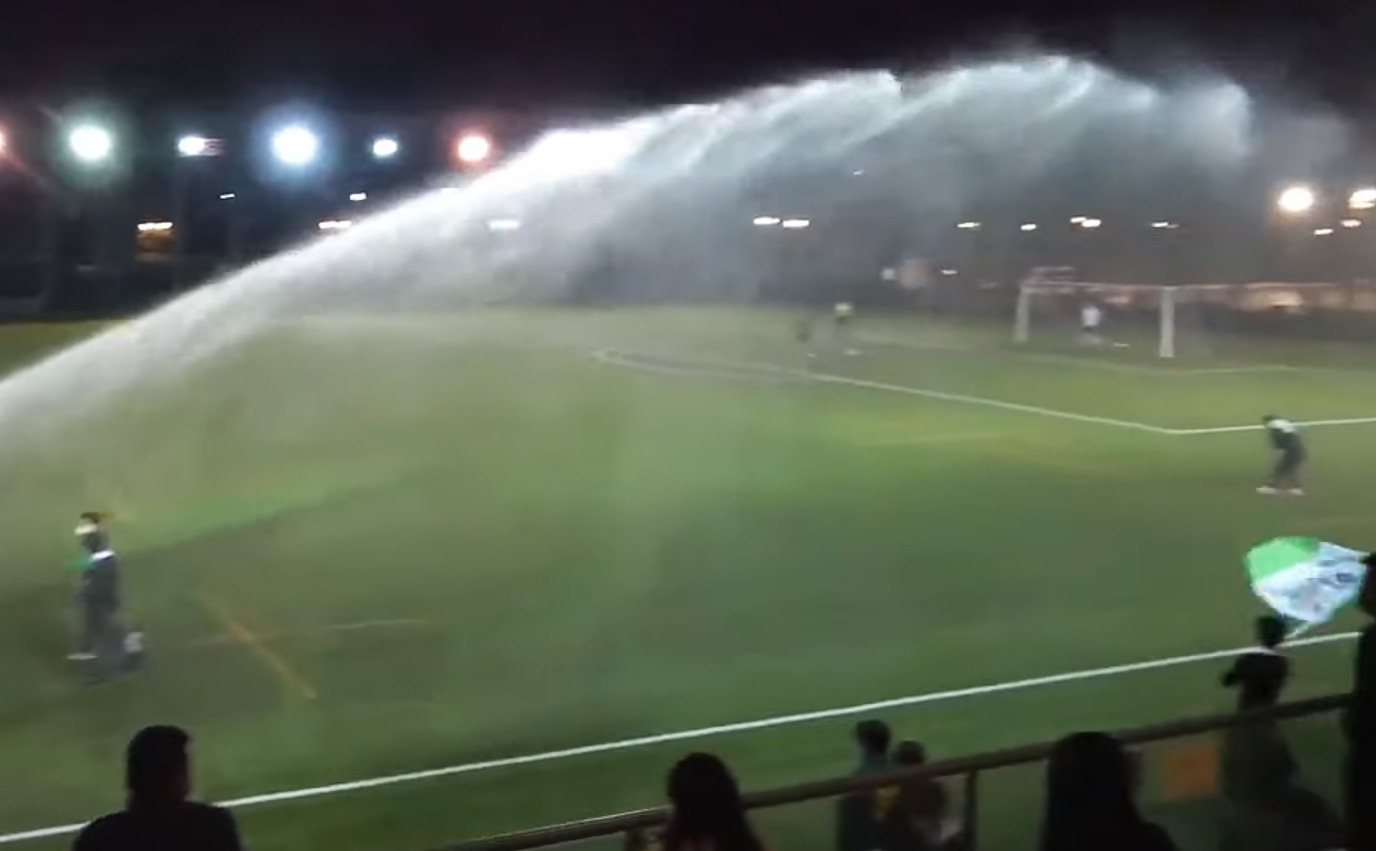 近日一場學界足球比賽,在互射12碼期間球場照灑水,引起了網上熱議。