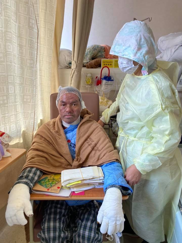 首頁港聞港聞 上月馬鞍山被火燒男子情況好轉 作者:熱血編輯部 (陳五) 12-15-2019 Like Facebook Twitter 更多 Like1380 分享0 留言0 上月11日在馬鞍山被人淋潑液體點火燒傷的李姓中年漢,情況好轉。民建聯立法會議員葛珮帆於社交網站上載傷者近照,指她與與財政司長陳茂波昨日到醫院探望,並把市民的心意咭、信及第三批支票交給了李生及李太。葛珮帆指李先生情況好轉,可以下床走幾步、坐起身及進食,但手上皮膚感覺硬及繃緊,手指未能活動。李先生在第三次植皮手術中,有三分二皮膚植皮成功,但身體虛弱仍有發燒,醫生未有計劃再做手術。(圖片來源:葛珮帆fb)