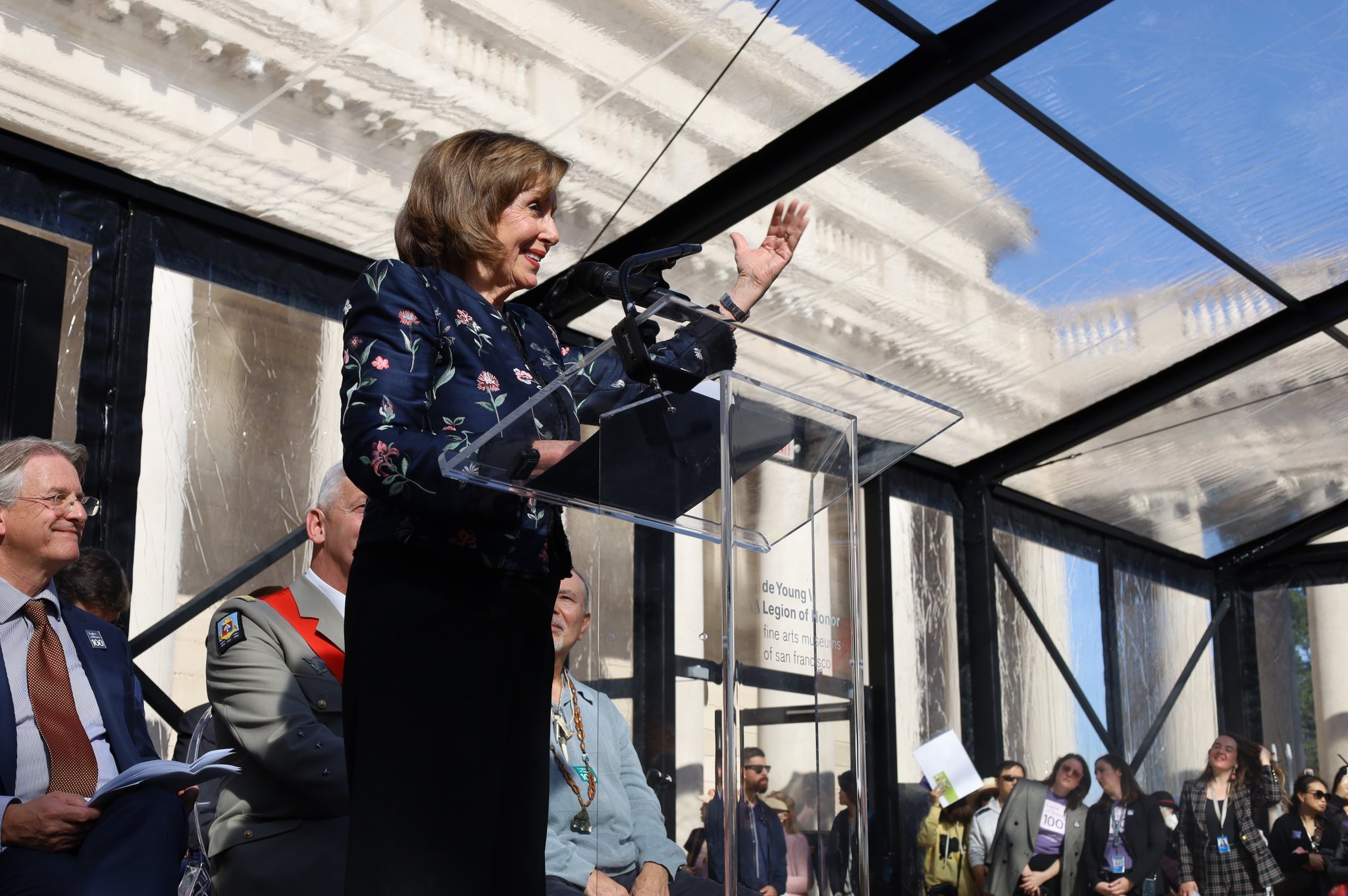 現年84歲的佩洛西和美國兩黨國會代表團前往盧森堡,參加第二次世界大戰關鍵戰役「突出部之役」80周年紀念活動。