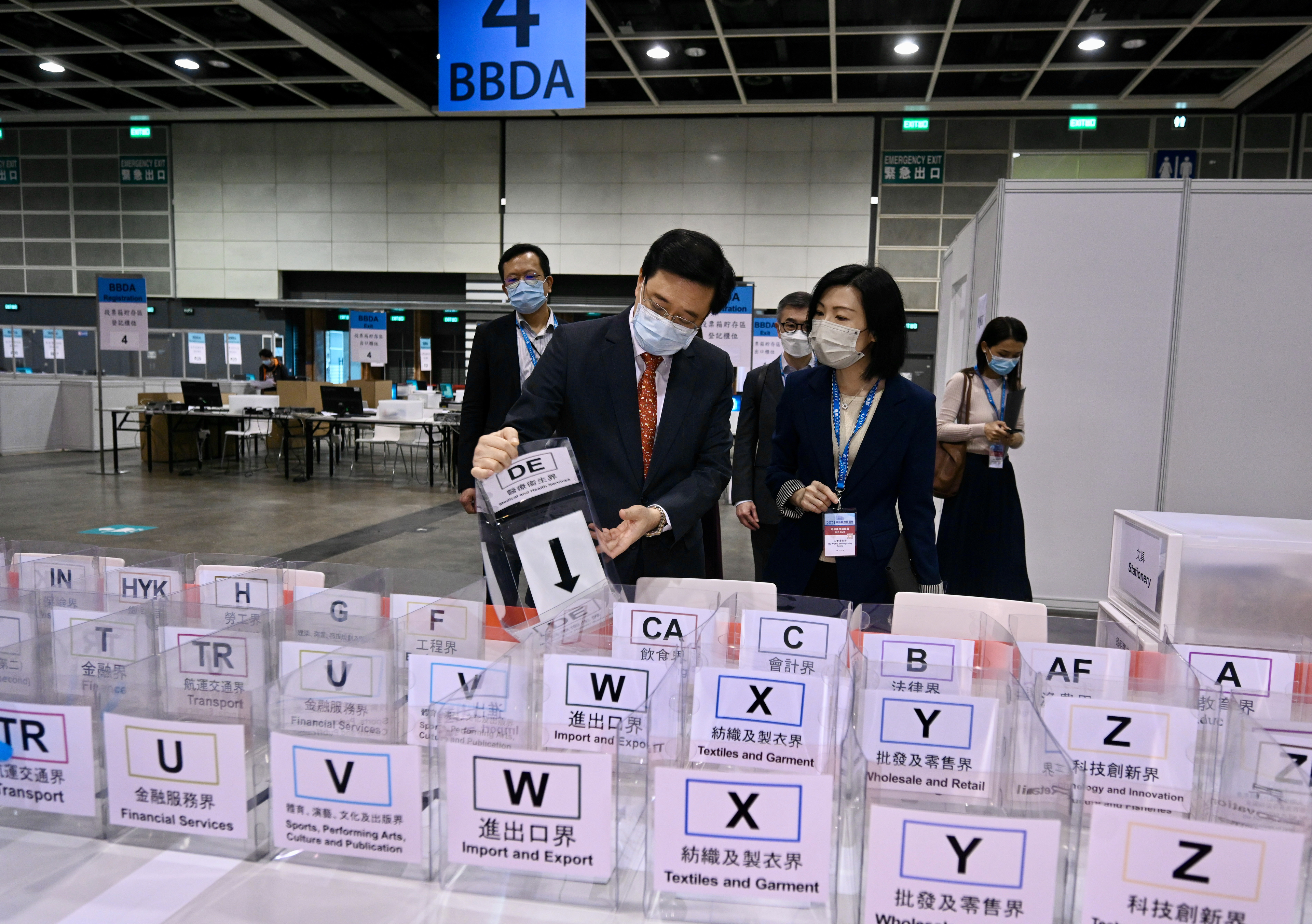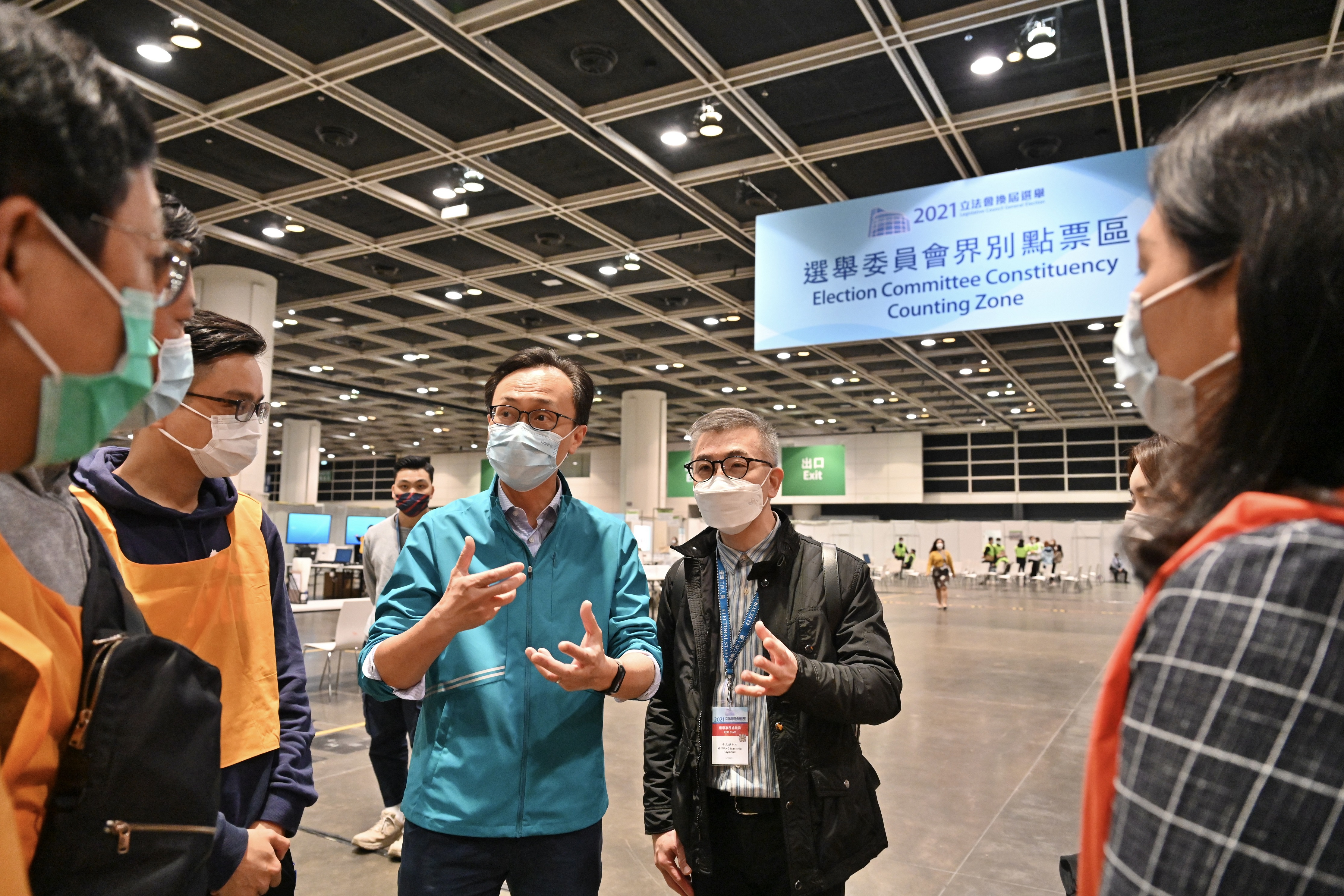 此外,公務員事務局局長聶德權今日到香港會議展覽中心的投票站和點票站,為準備選舉工作的公務員同事打氣。