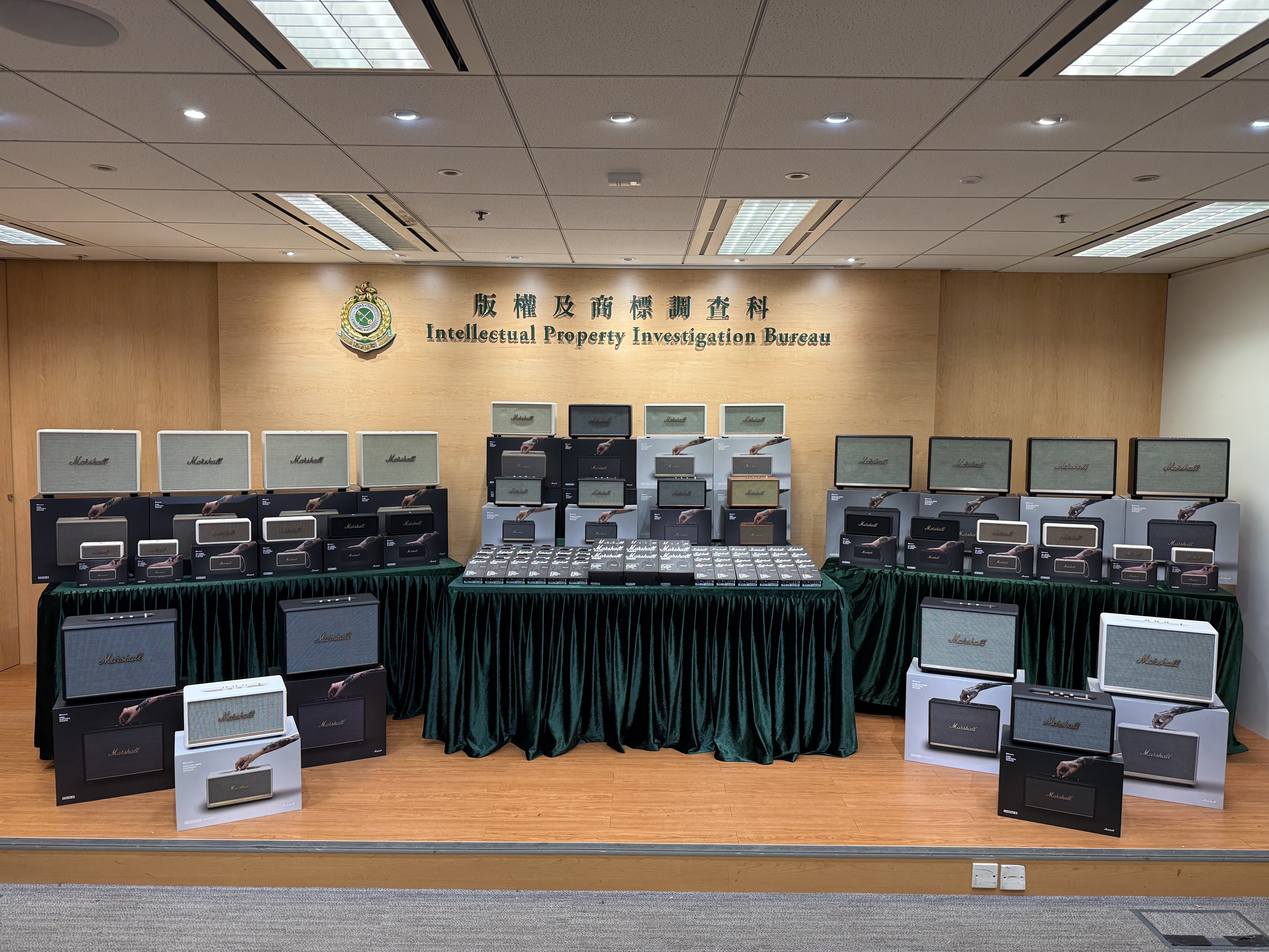海關早前接獲舉報,指一個連鎖零售集團售賣懷疑冒牌喇叭及無線耳機。經深入調查及在商標持有人的協助下,海關人員昨日採取執法行動,突擊搜查該集團於全港多區的8間分店及1個位於九龍的工廈單位,並檢獲一批懷疑冒牌喇叭及無線耳機。