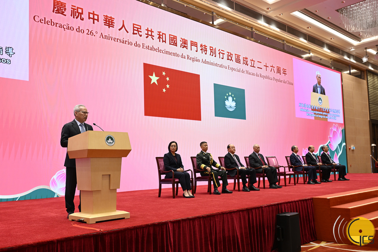 今日(12月20日)是澳門特別行政區成立26周年,澳門特區政府早上在金蓮花廣場舉行升旗儀式,之後在中葡綜合體舉行慶祝酒會。