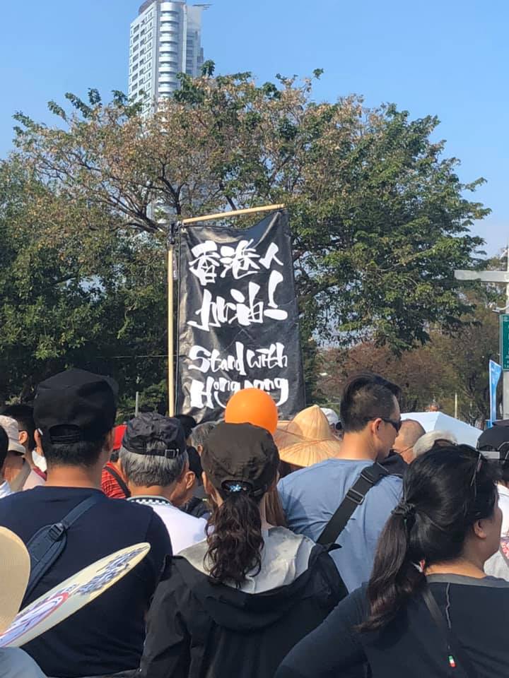 在要求罷免韓國瑜高雄市長職位的遊行中,有在台香港學生參加,亦見到聲援香港的標語。